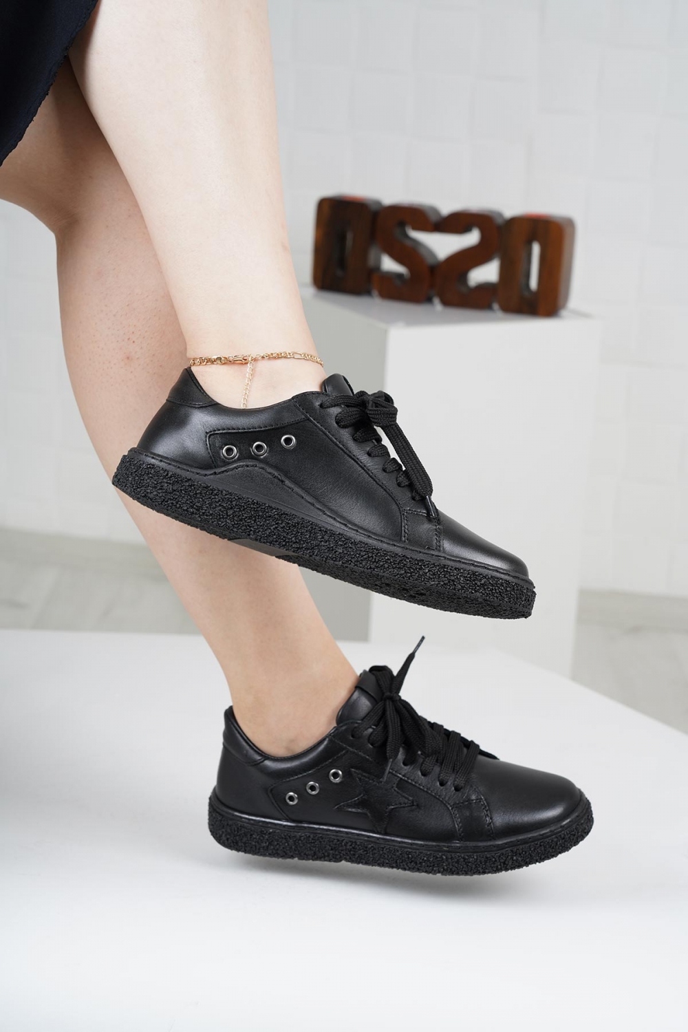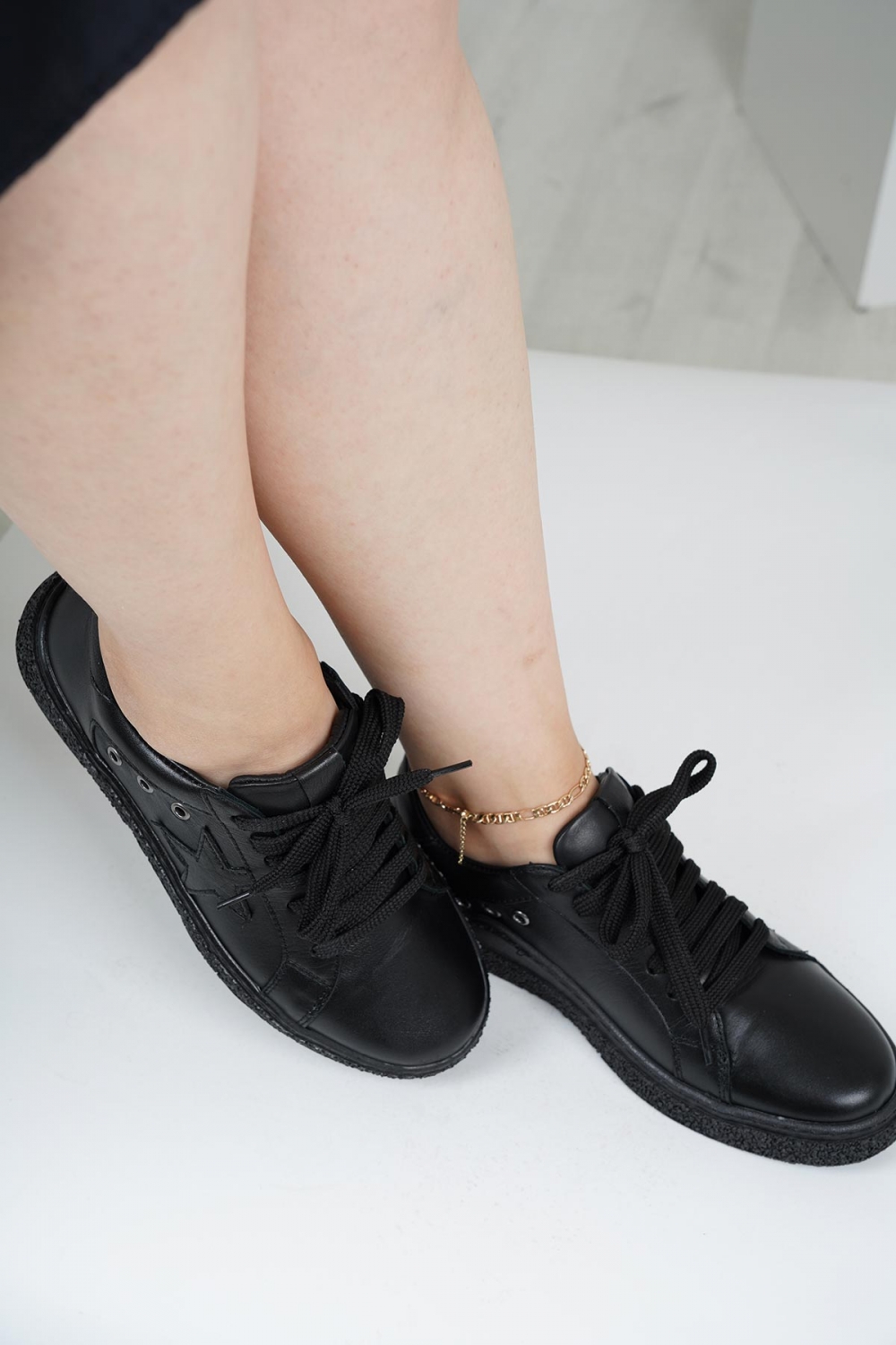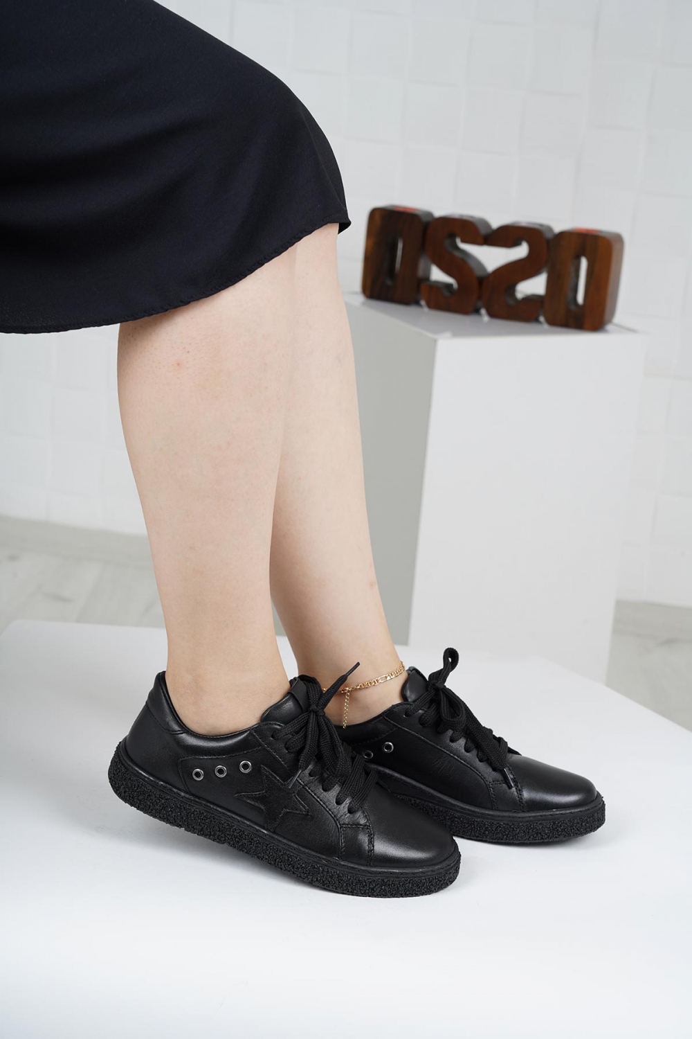 Hakiki Deri Siyah Kadın Spor Ayakkabı 222220103