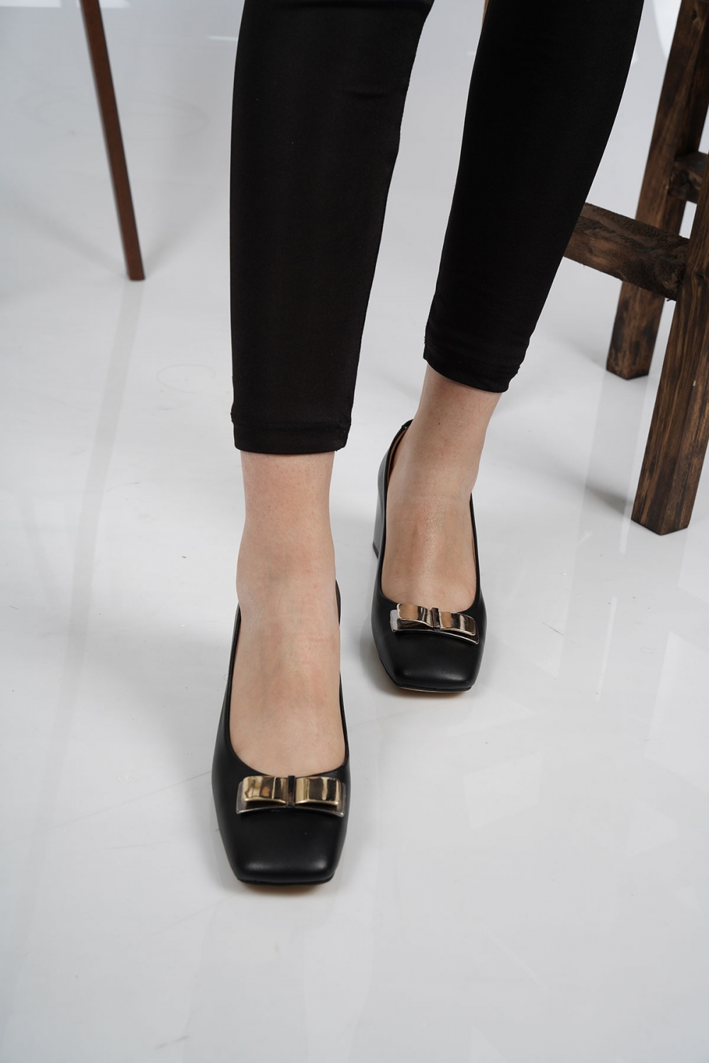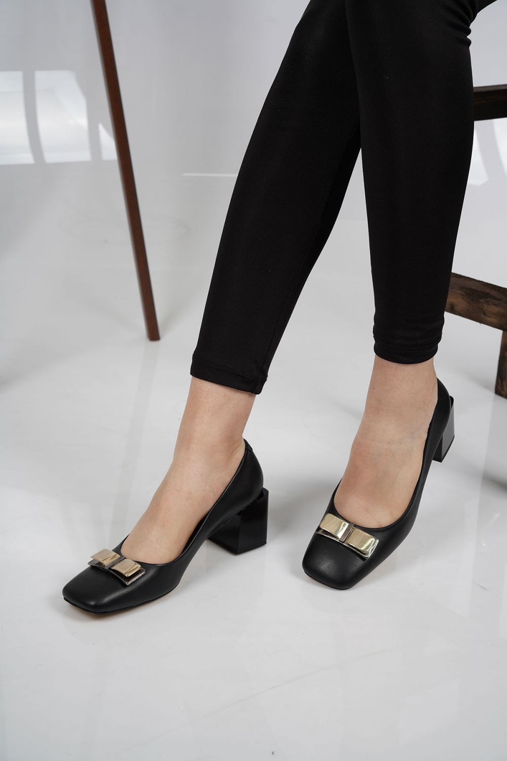 Hakiki Deri Siyah Kadın Topuklu Ayakkabı 212127101