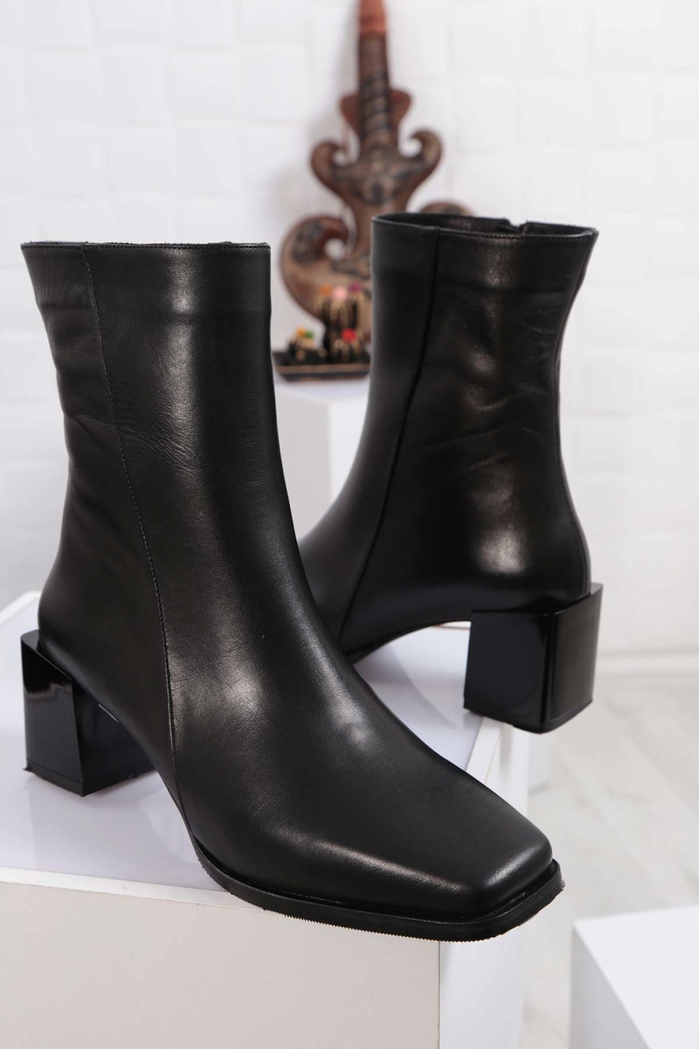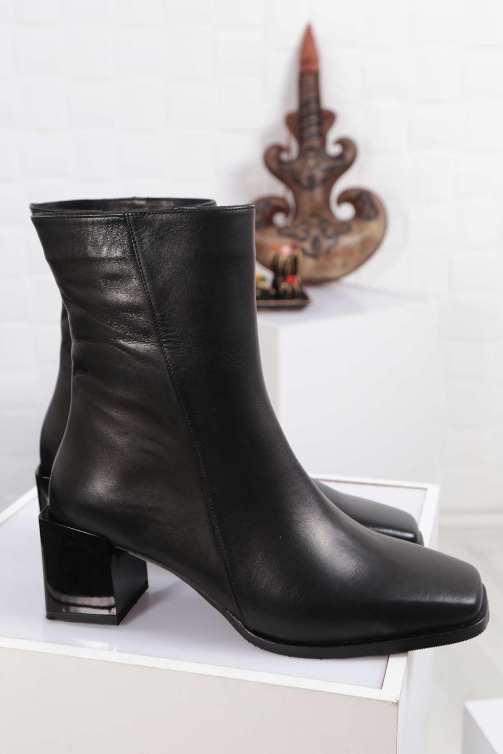 Hakiki Deri Siyah Kadın Topuklu Bot 212127212