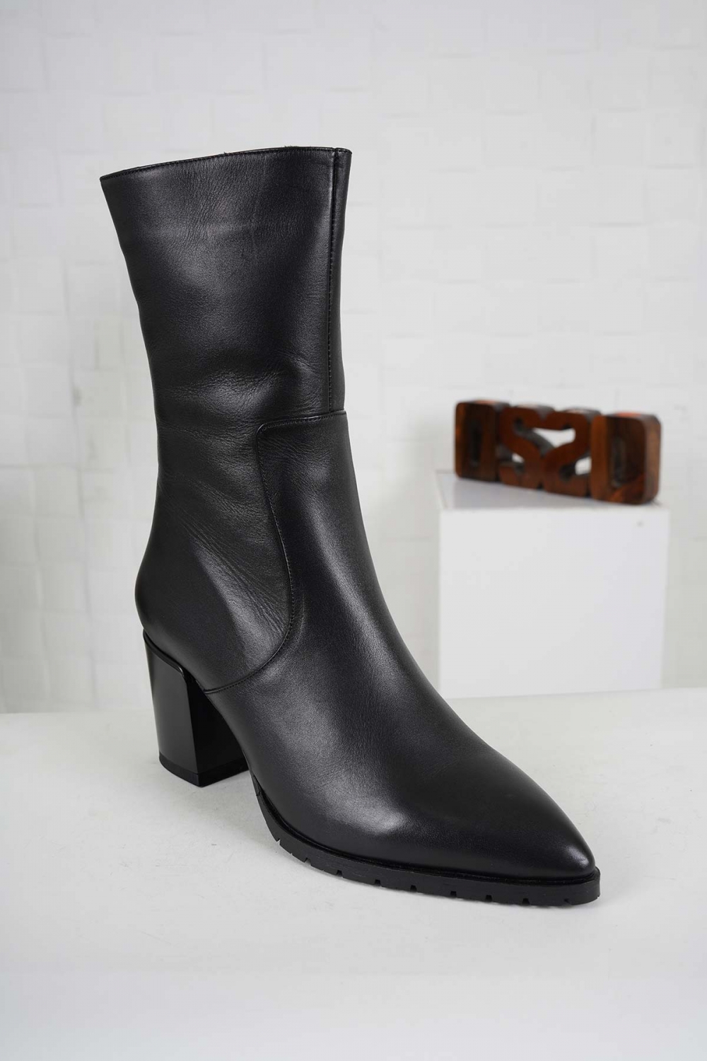 Hakiki Deri Siyah Kadın Topuklu Bot 222127218