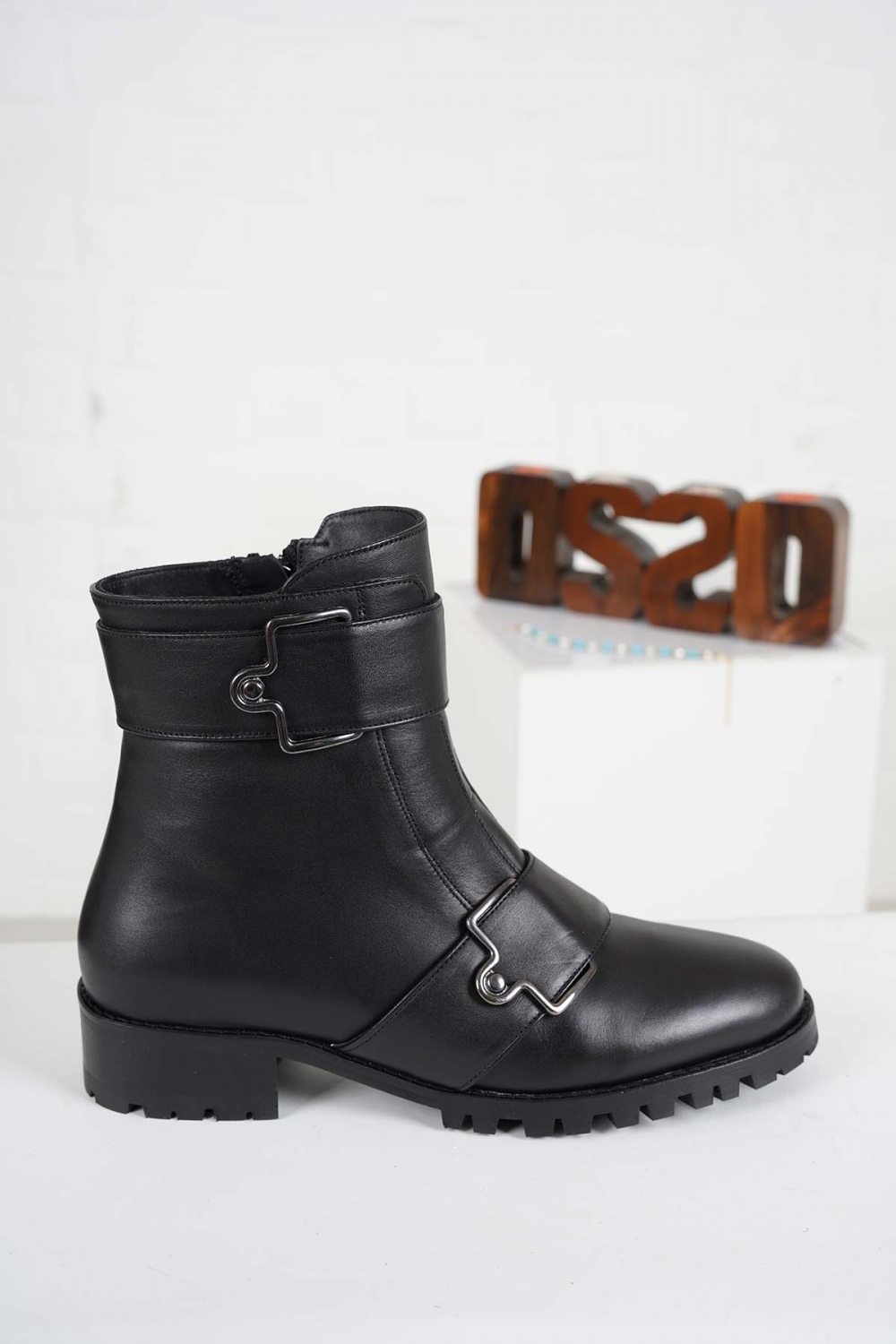 Hakiki Deri Siyah Kırık Rugan Kadın Casual Bot 242176205