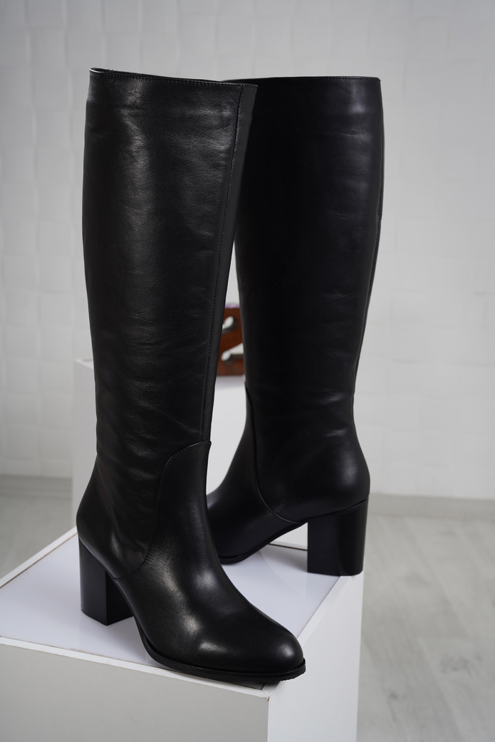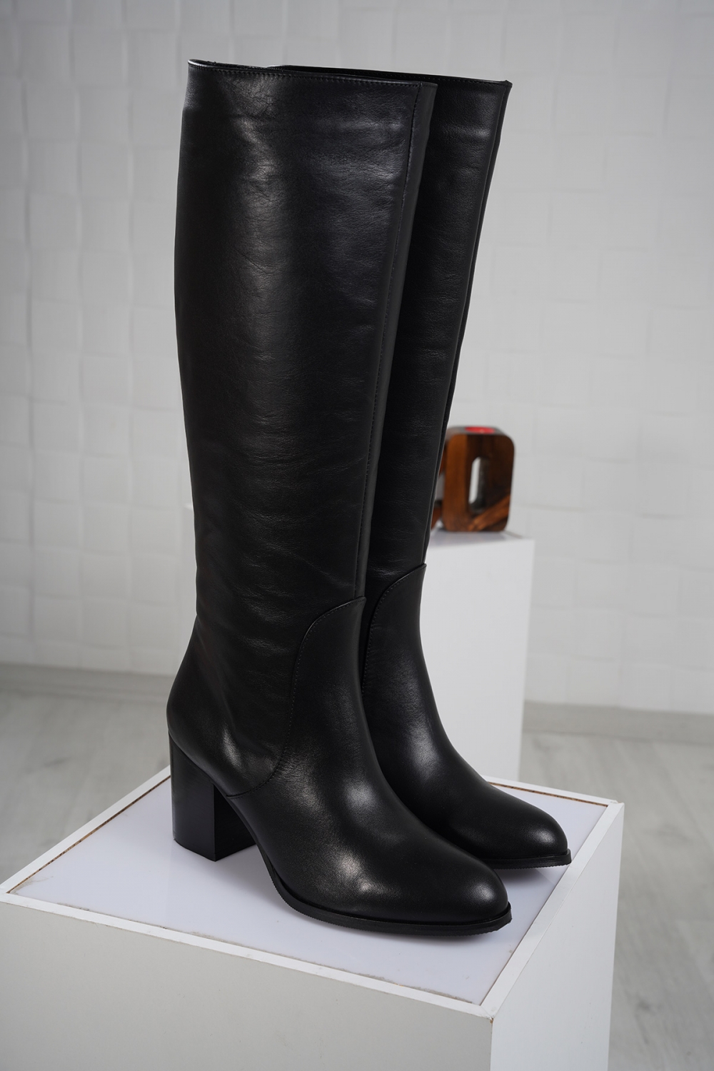 Hakiki Deri Siyah Kadın Topuklu Çizme 212110309