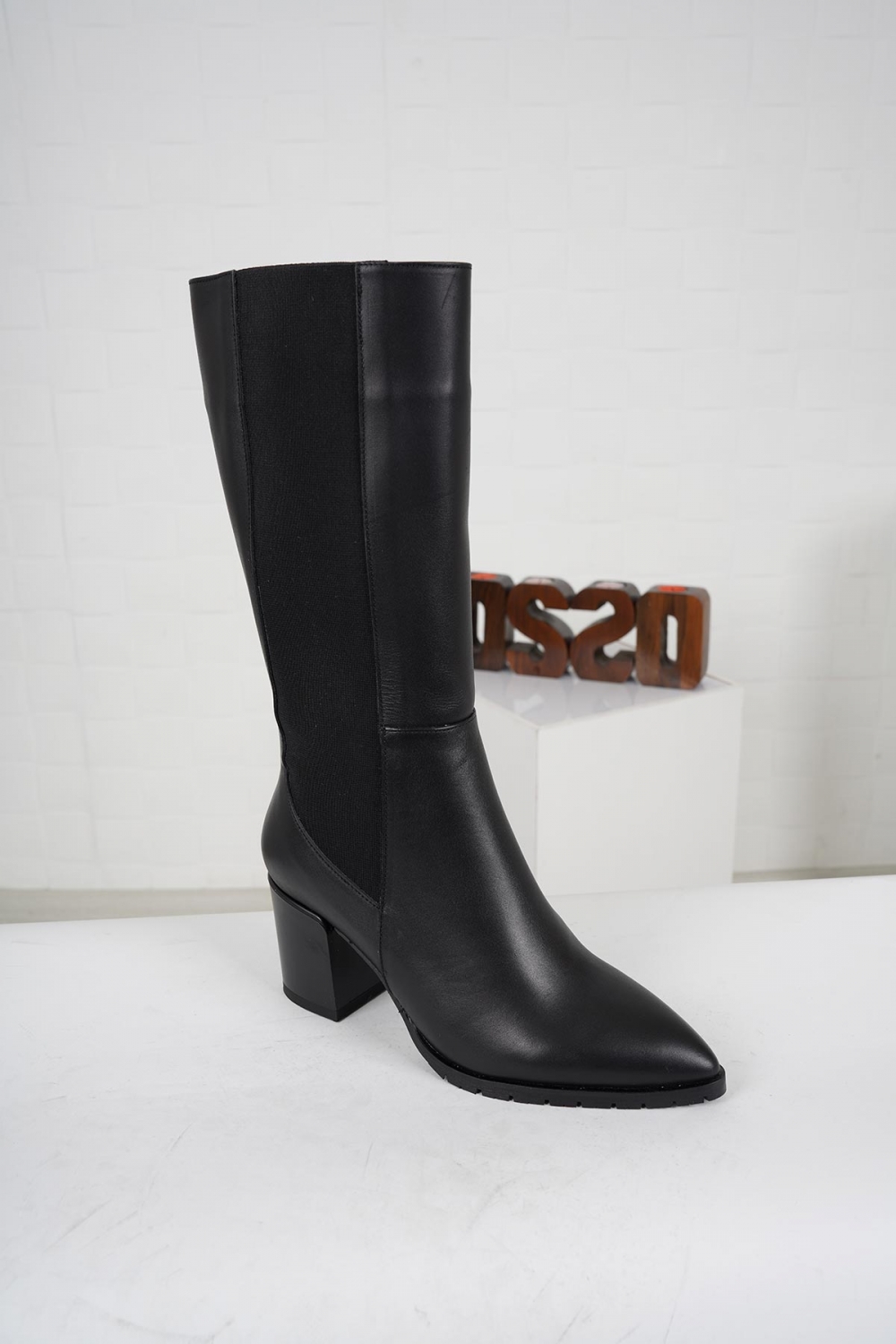 Hakiki Deri Siyah Kadın Topuklu Çizme 232127301