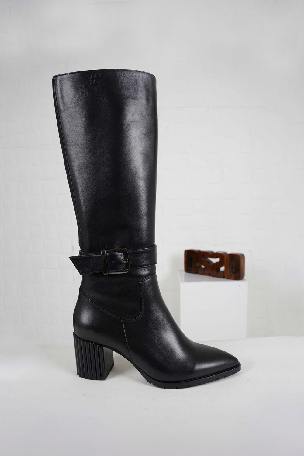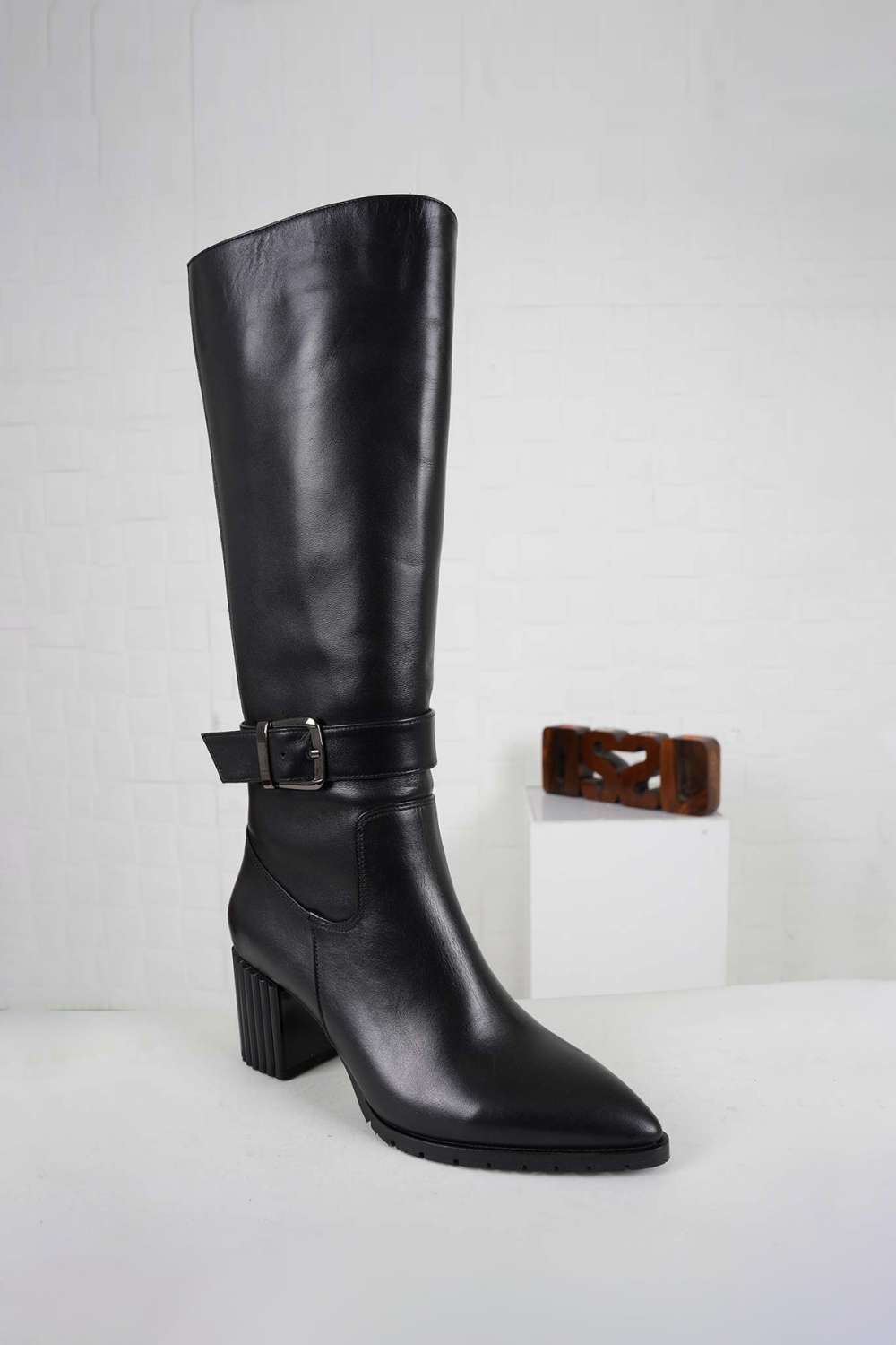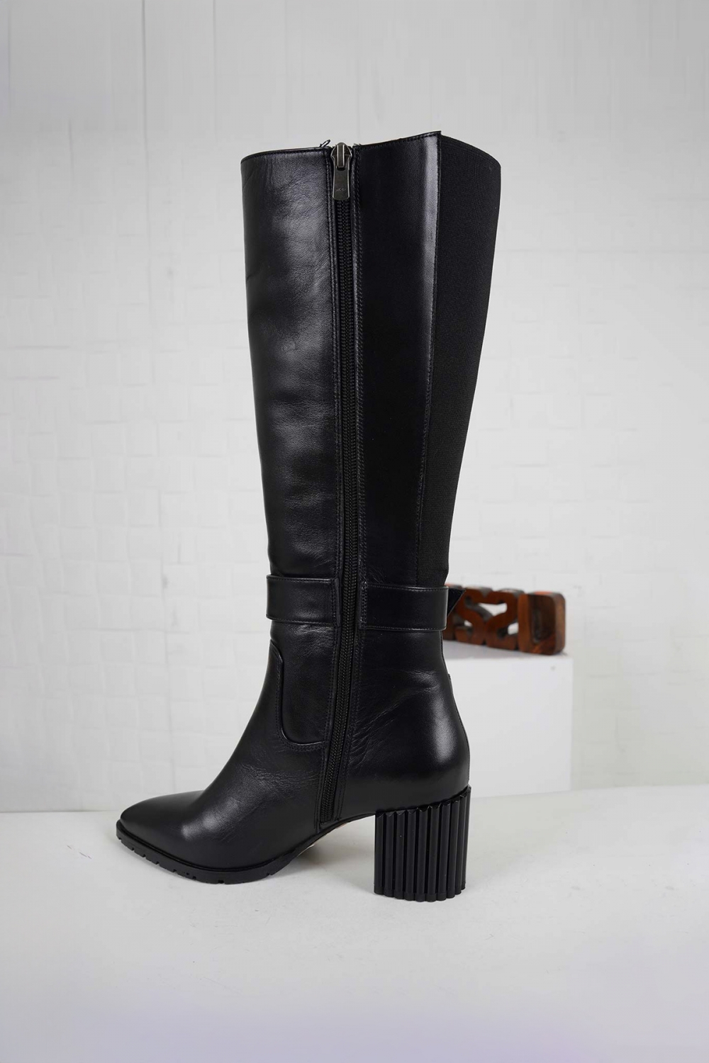 Hakiki Deri Siyah Kadın Topuklu Çizme 232186302