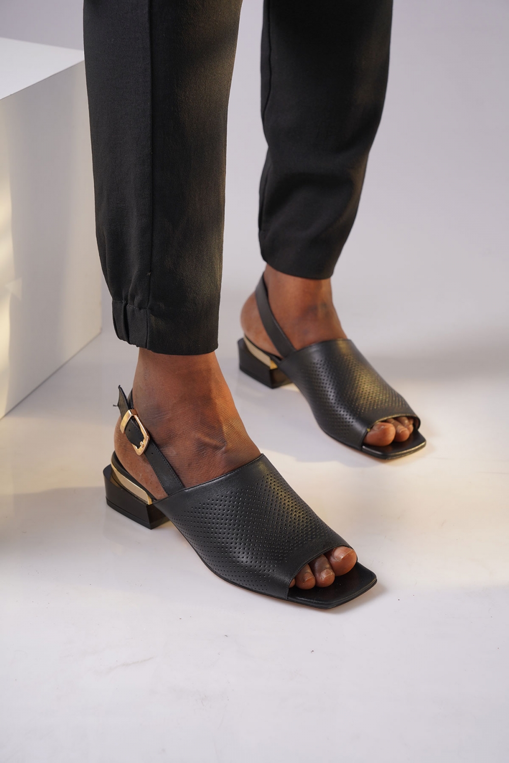 Hakiki Deri Siyah Kadın Topuklu Sandalet 211127533