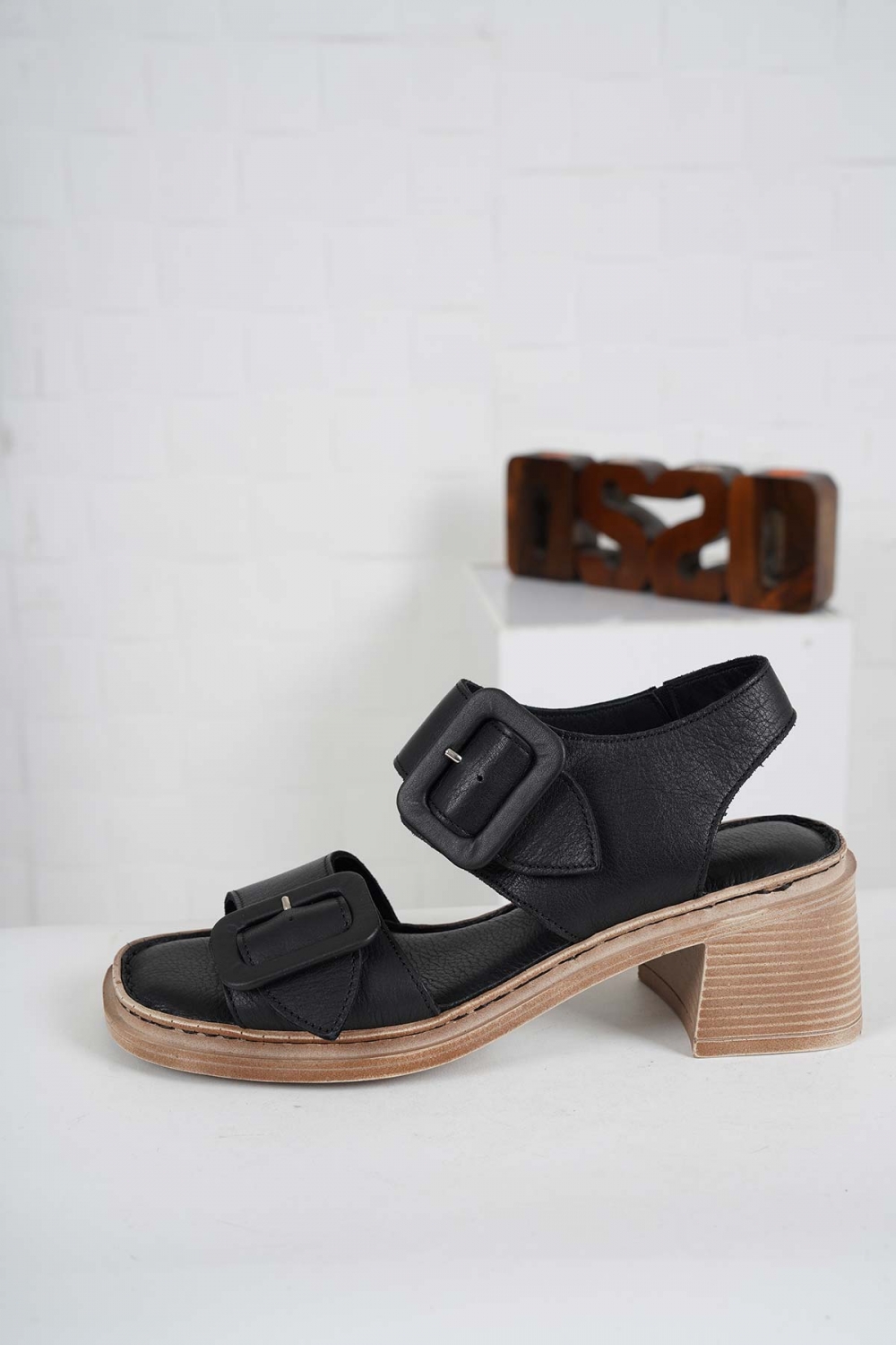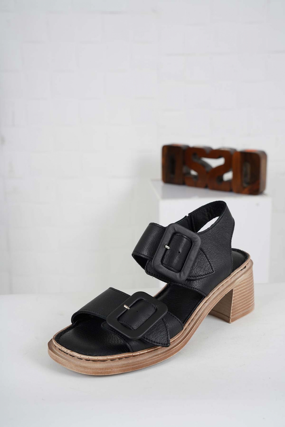 Hakiki Deri Siyah Kadın Topuklu Sandalet 241224503