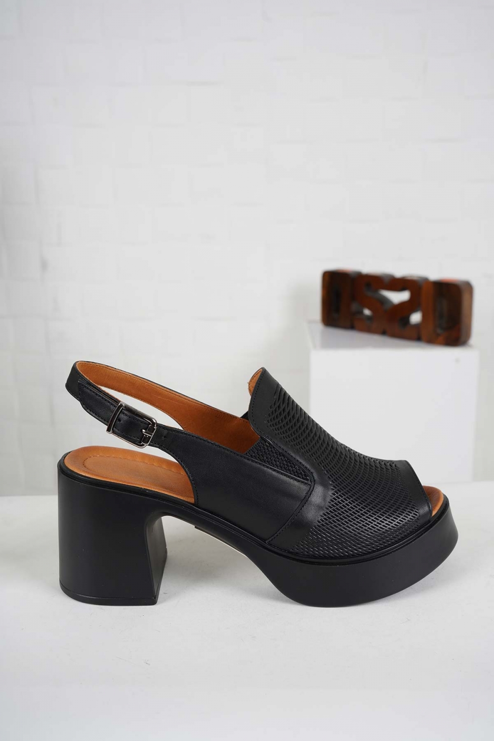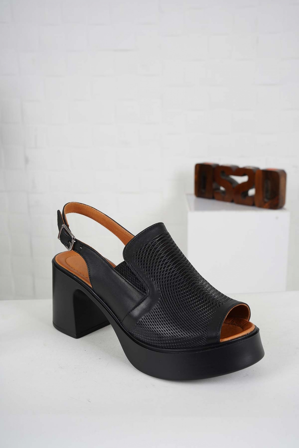 Hakiki Deri Siyah Kadın Topuklu Sandalet 241229508