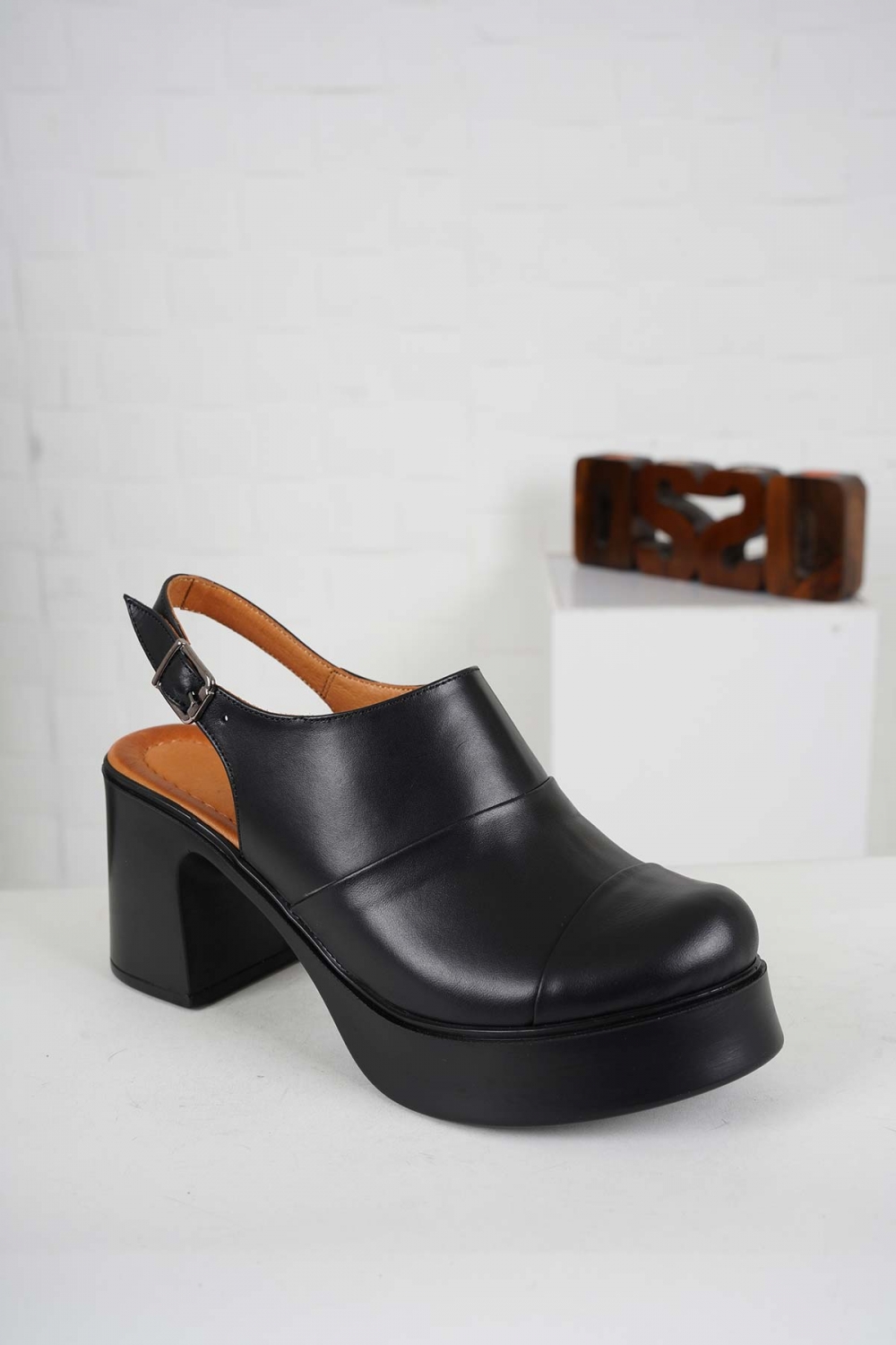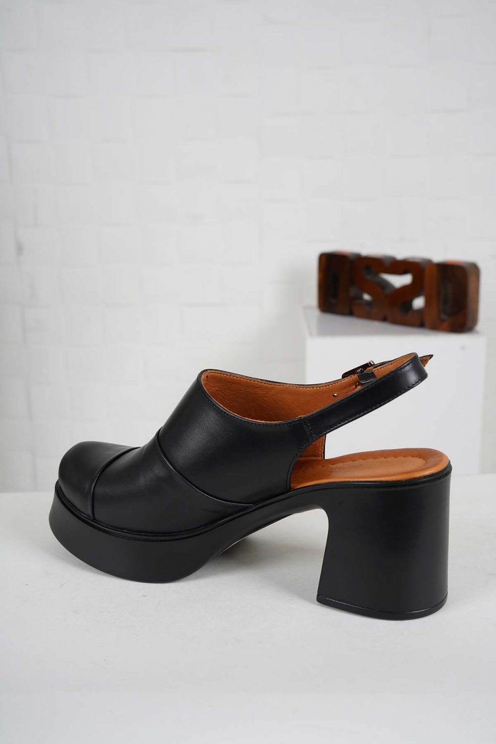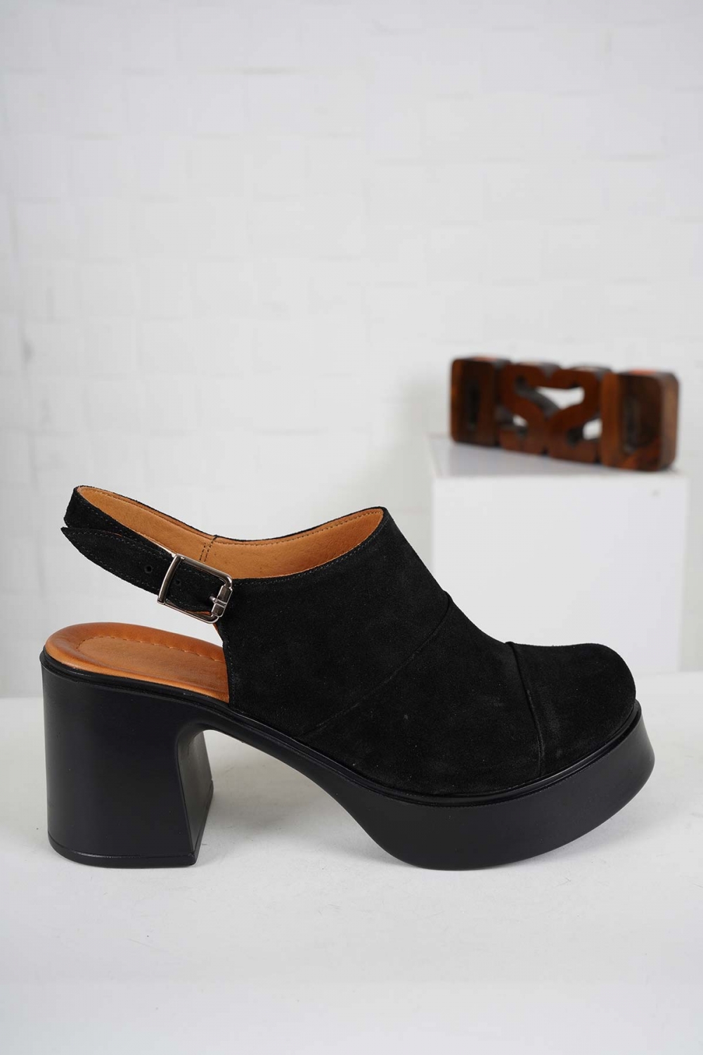 Hakiki Deri Siyah Kadın Topuklu Sandalet 241229514