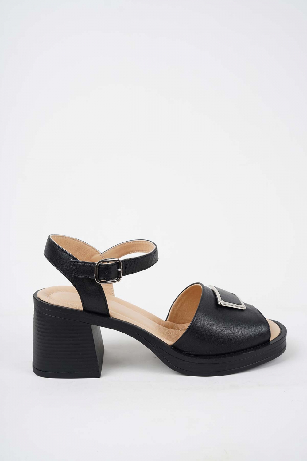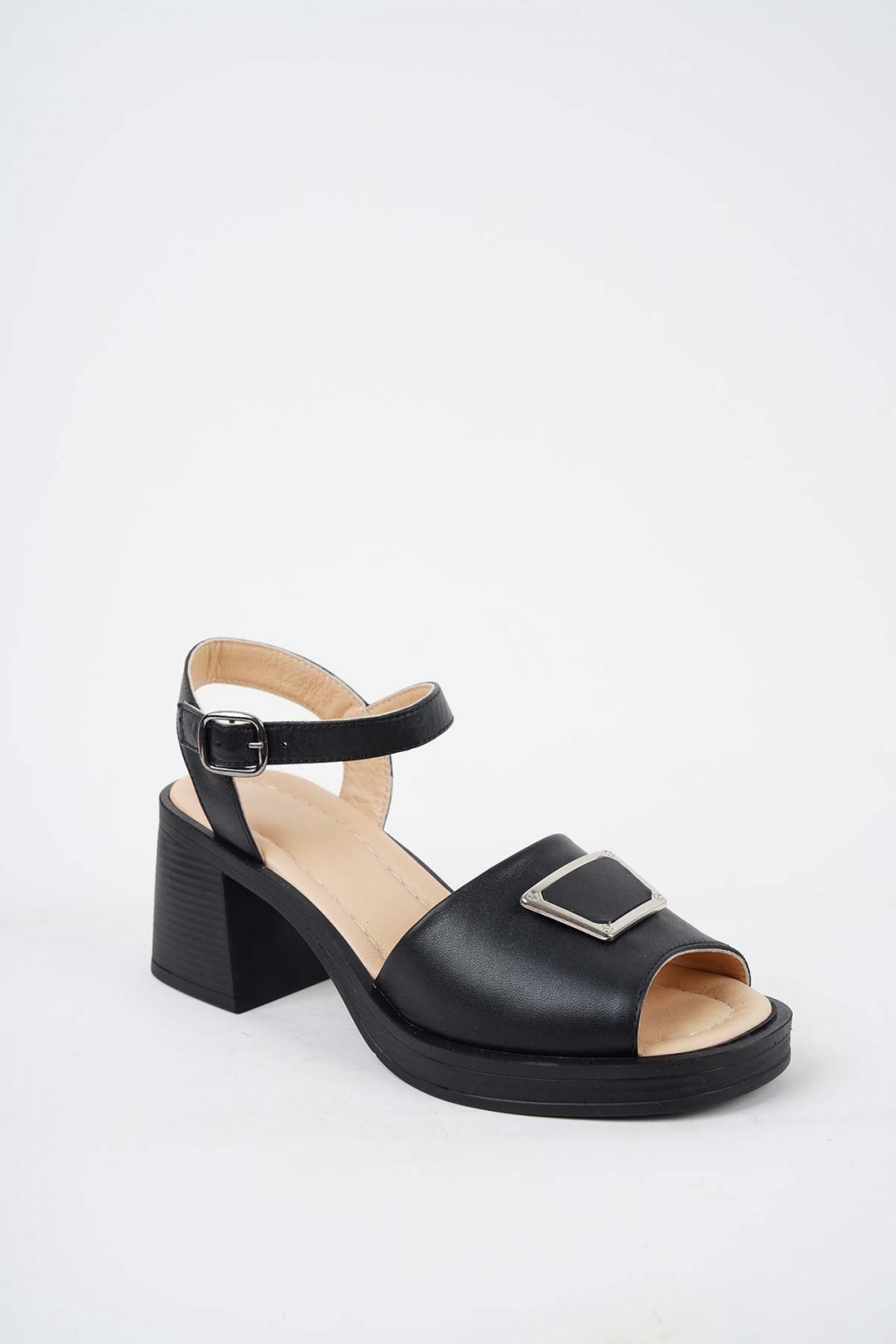 Hakiki Deri Siyah Kadın Topuklu Sandalet 261229601