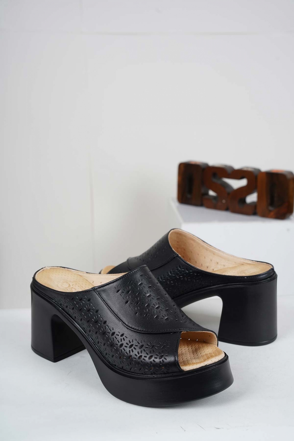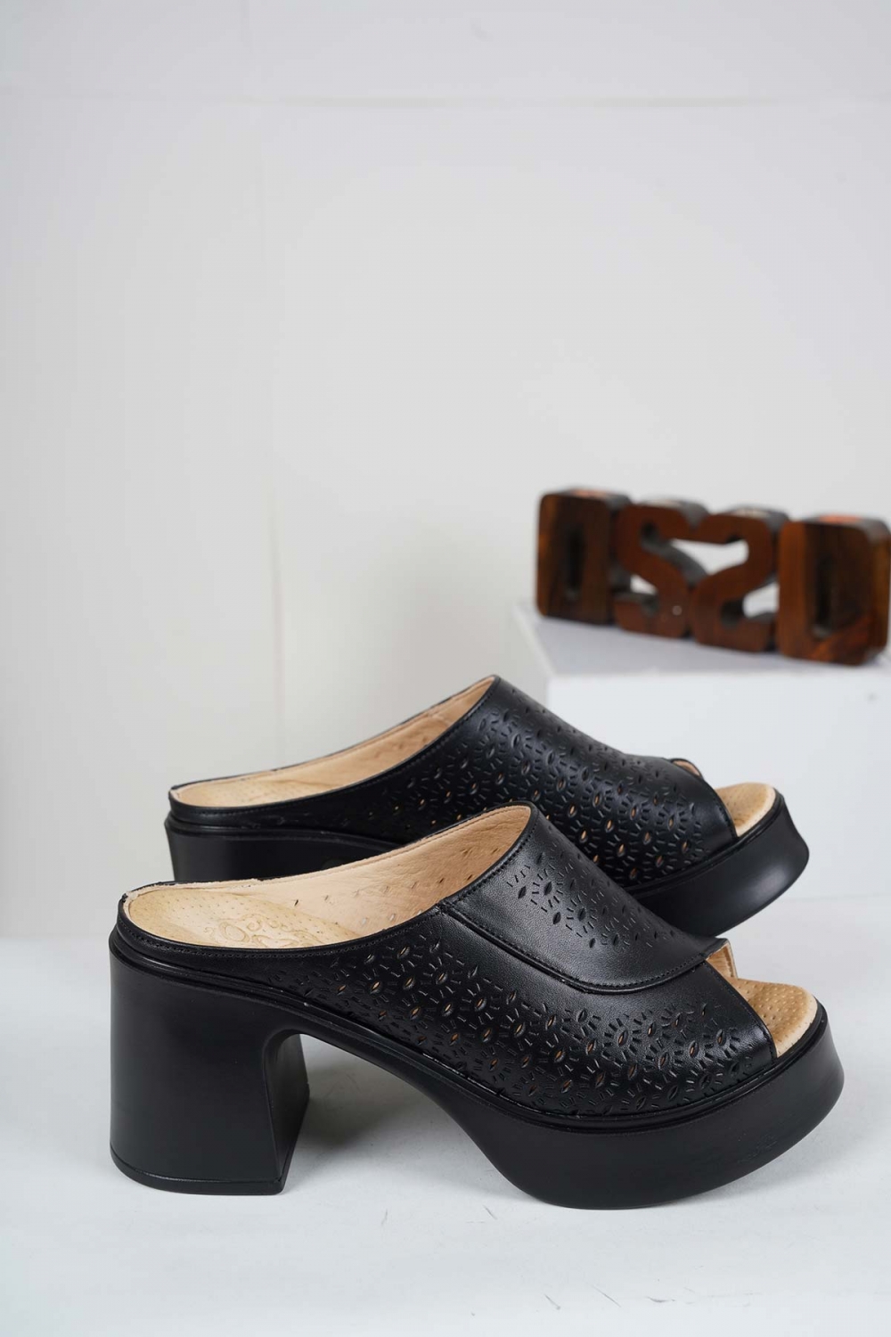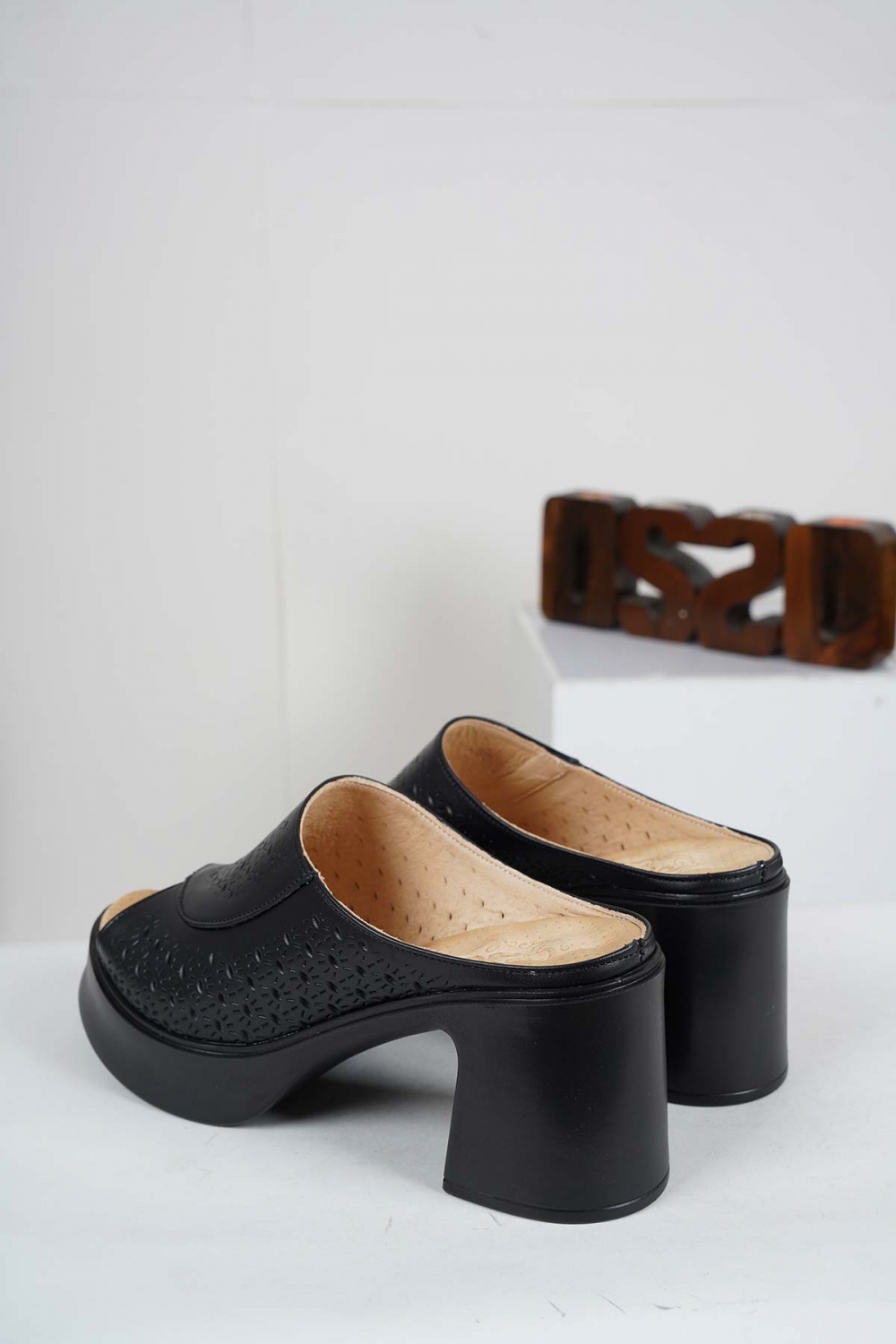 Hakiki Deri Siyah Kadın Topuklu Terlik 241229607