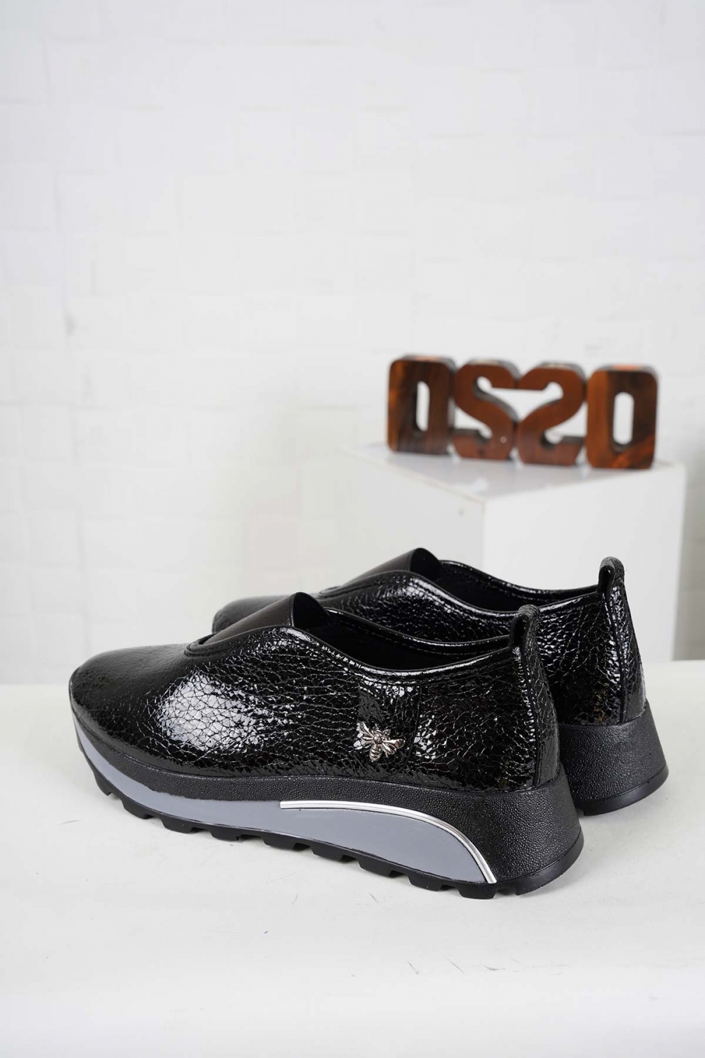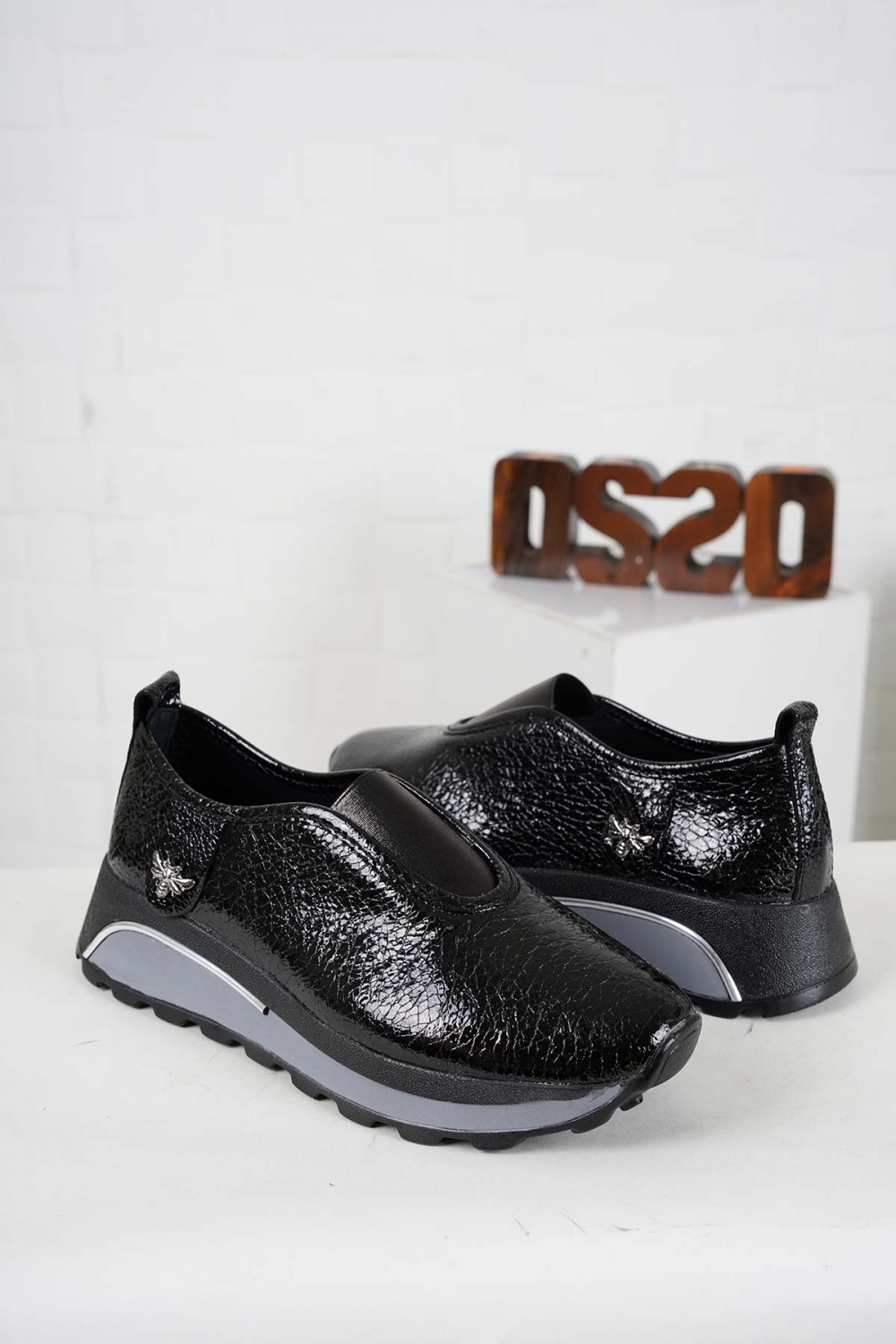 Hakiki Deri Siyah Kırık Rugan Kadın Casual Ayakkabı 242176100