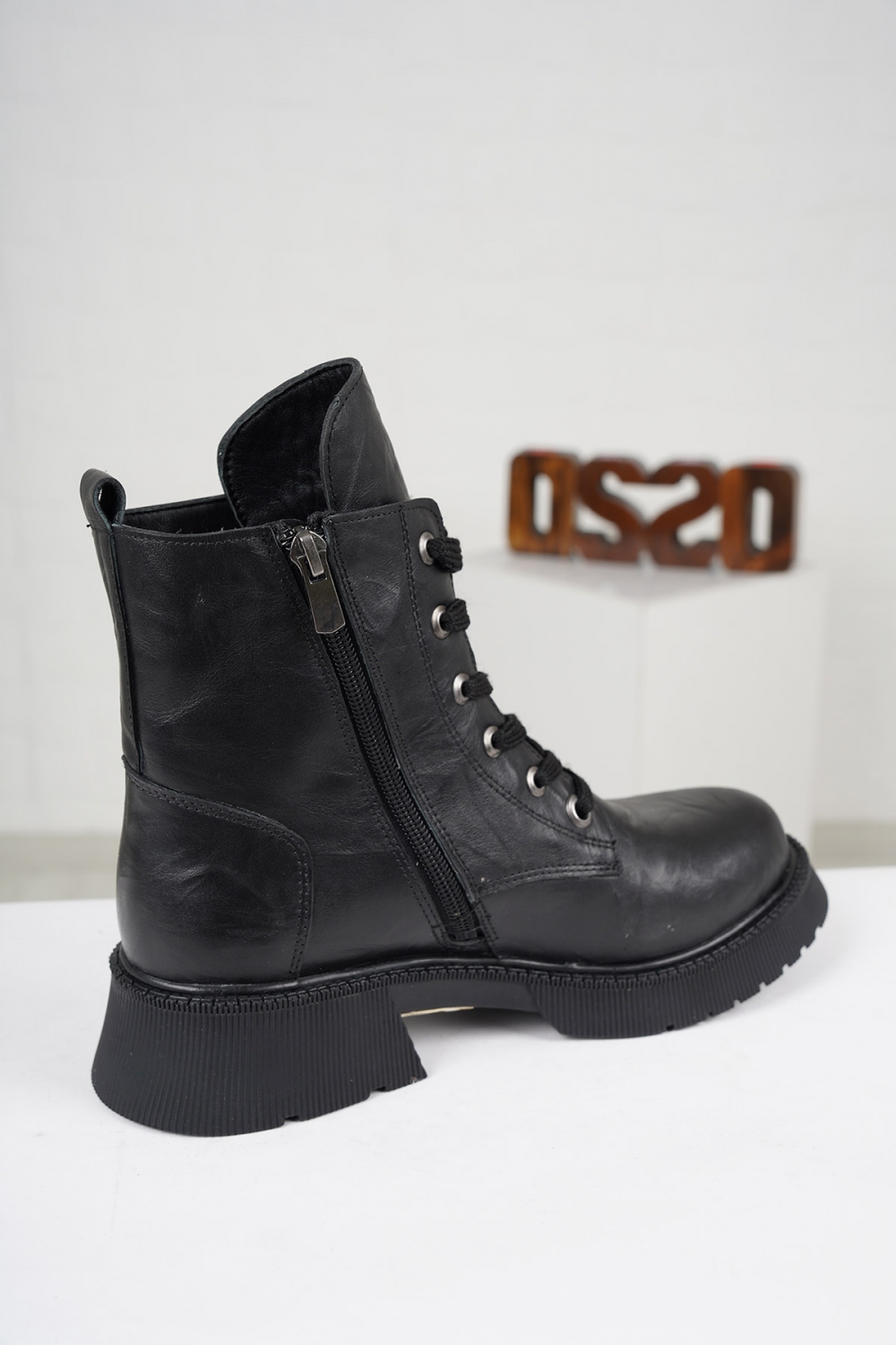 Hakiki Deri Siyah Kırışık Kadın Kısa Bot 222121201