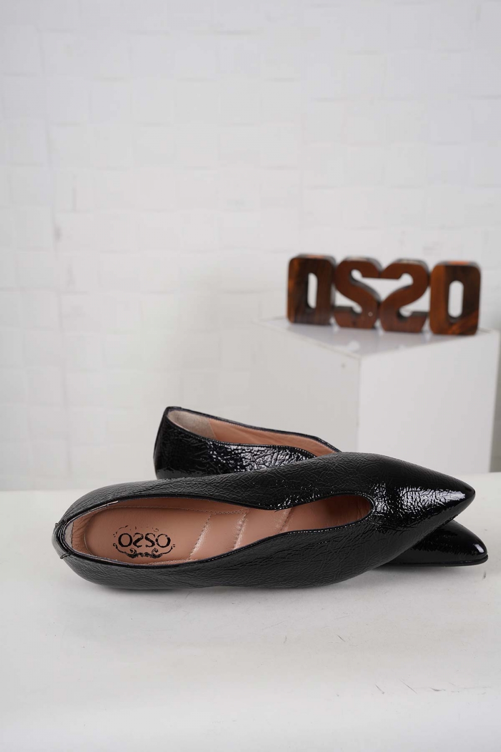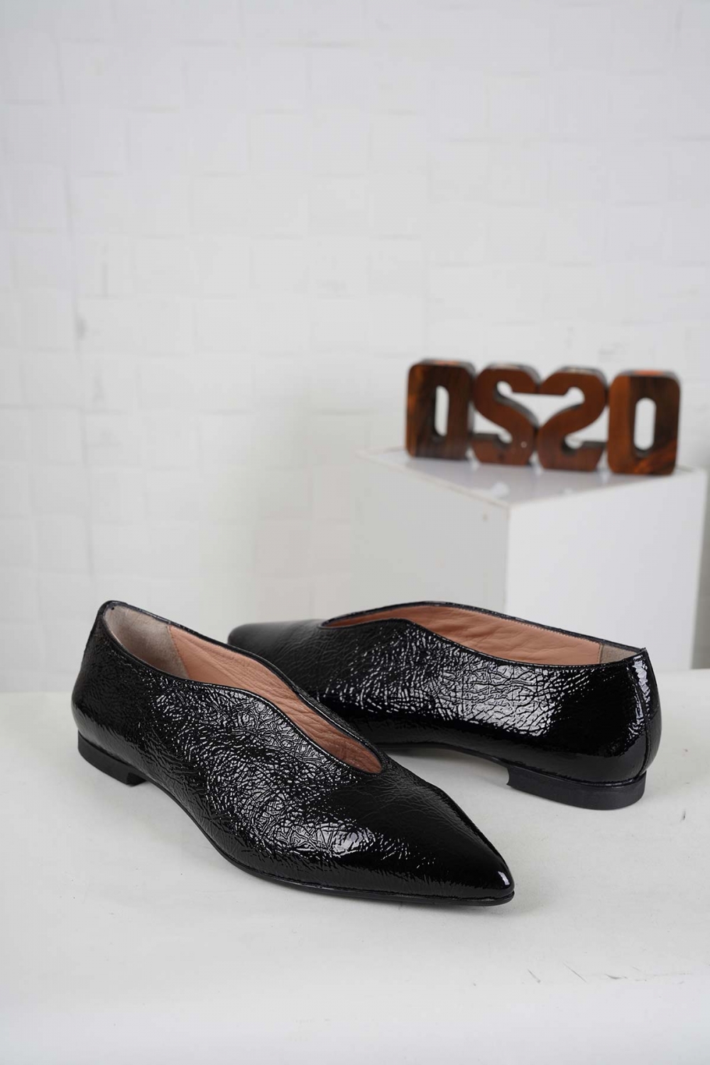 Hakiki Deri Siyah Kırışık Rugan Kadın Babet Ayakkabı 242127116
