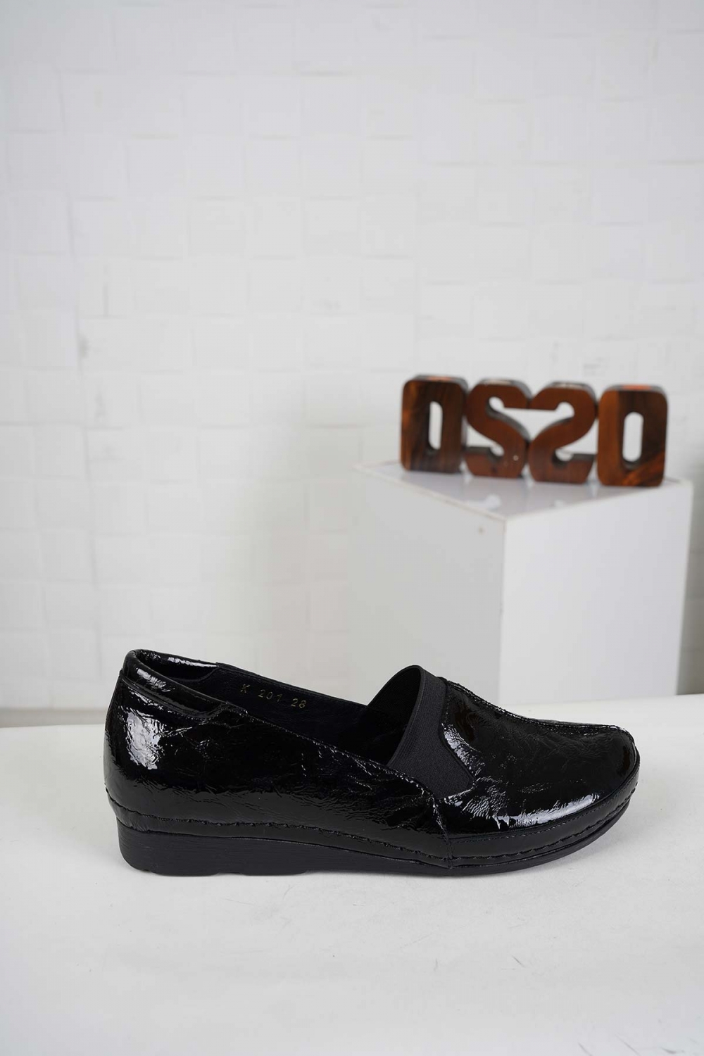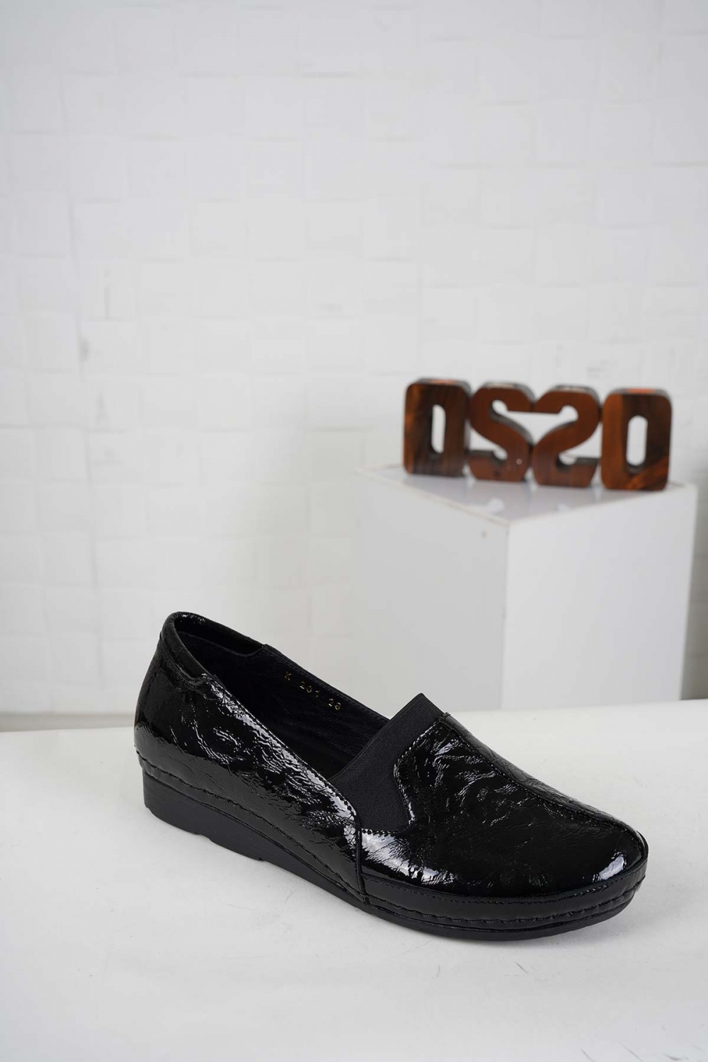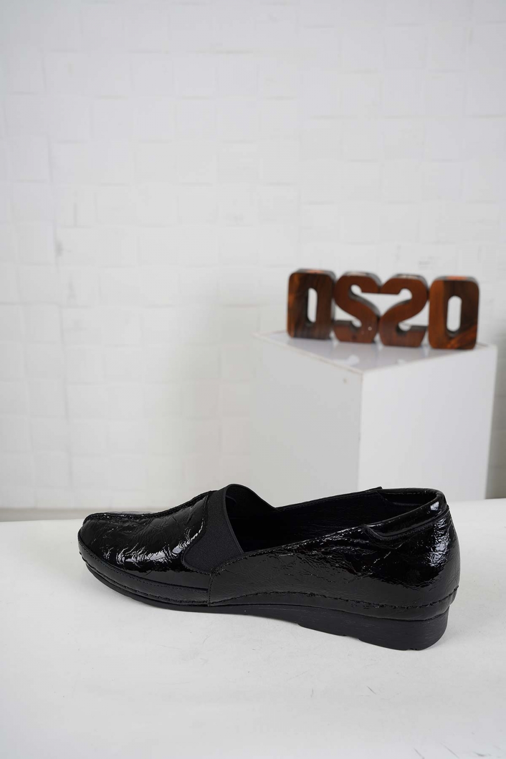 Hakiki Deri Siyah Kırışık Rugan Kadın Comfort Ayakkabı 242177100