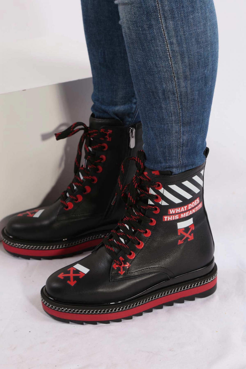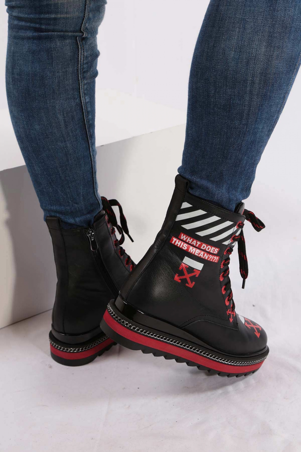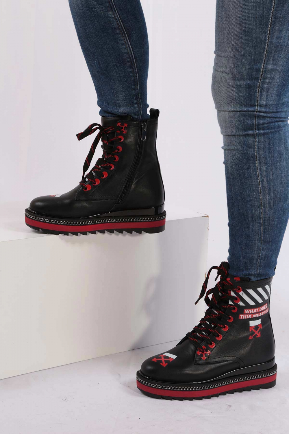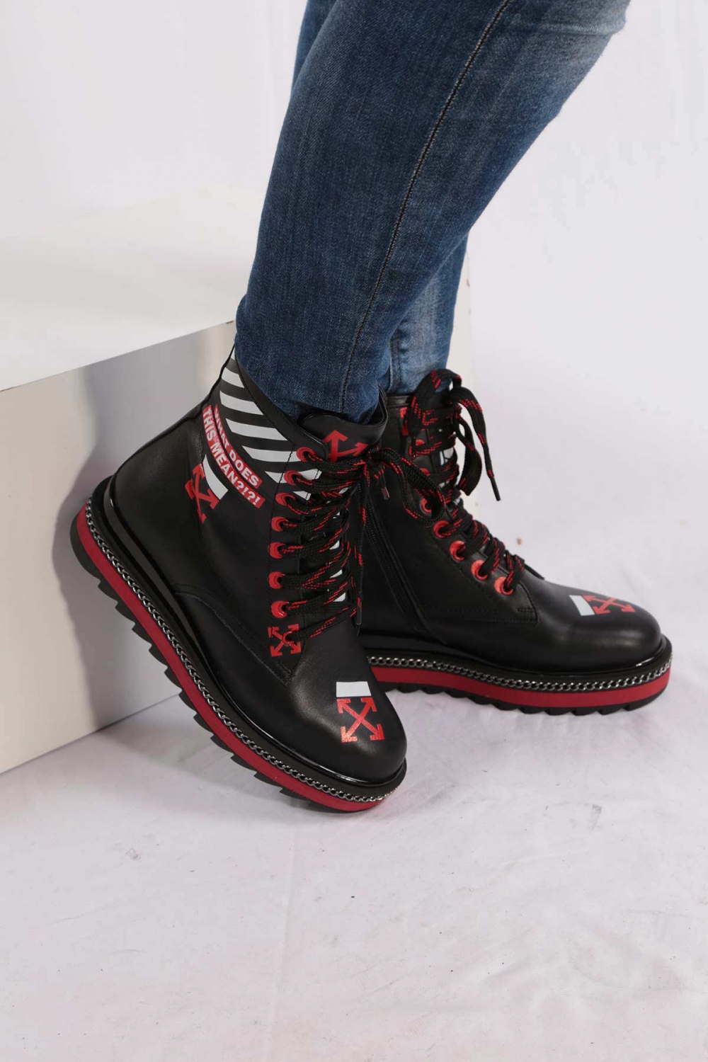 Hakiki Deri Siyah Kırmızı Kadın Postal Bot 202114211