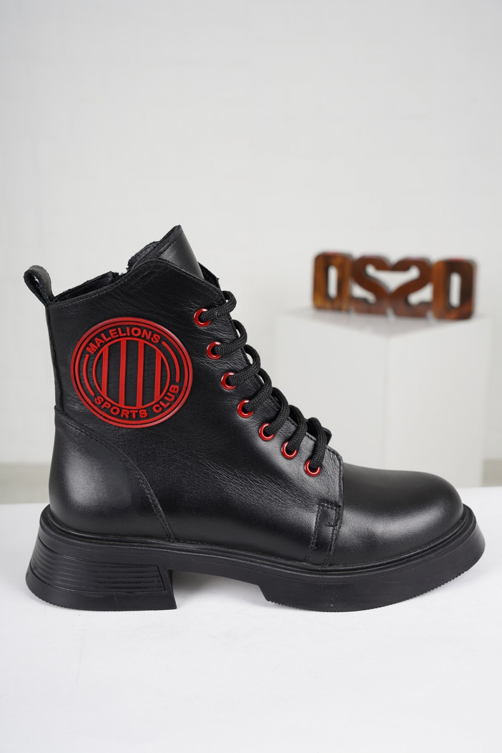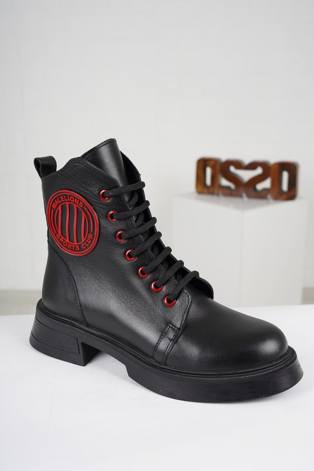 Hakiki Deri Siyah-Kırmızı Kadın Postal Bot 222172204