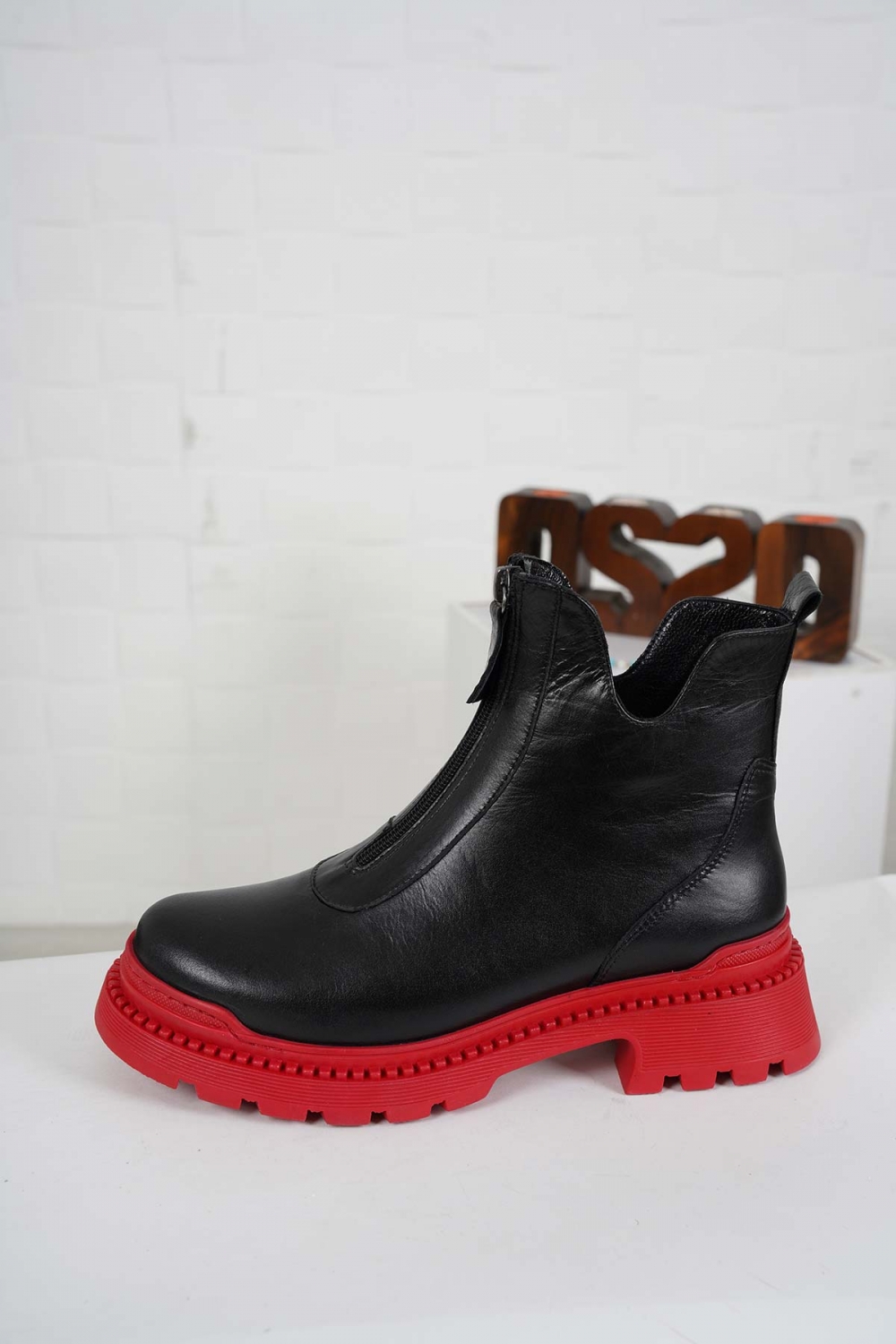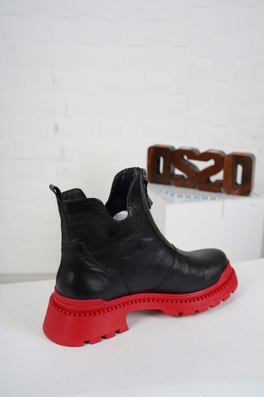 Hakiki Deri Siyah_Kırmızı Kadın Postal Bot 232145202