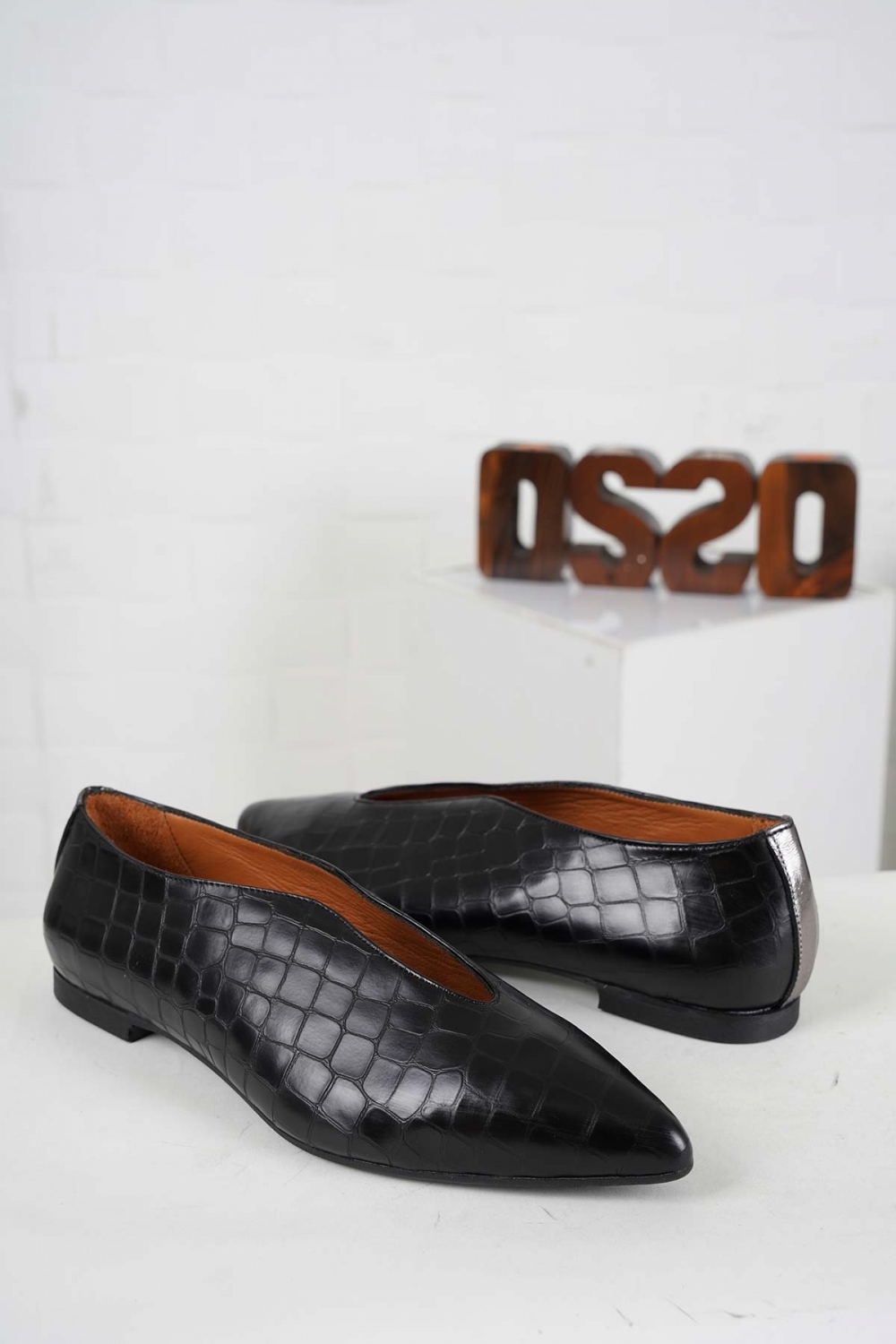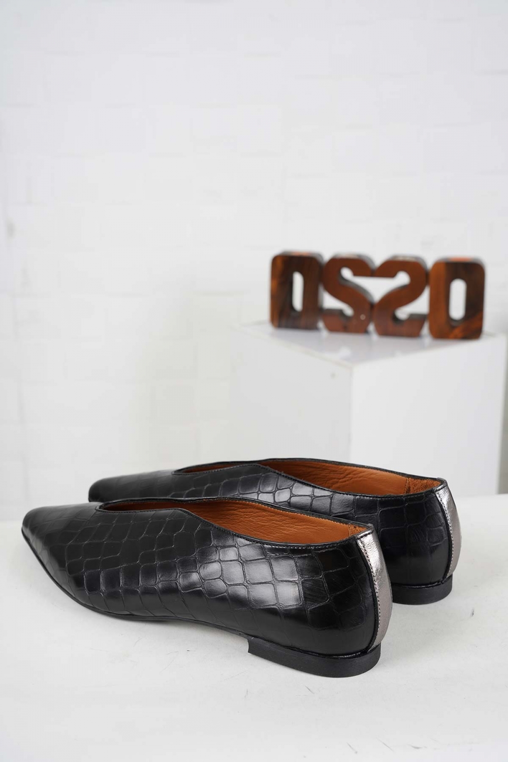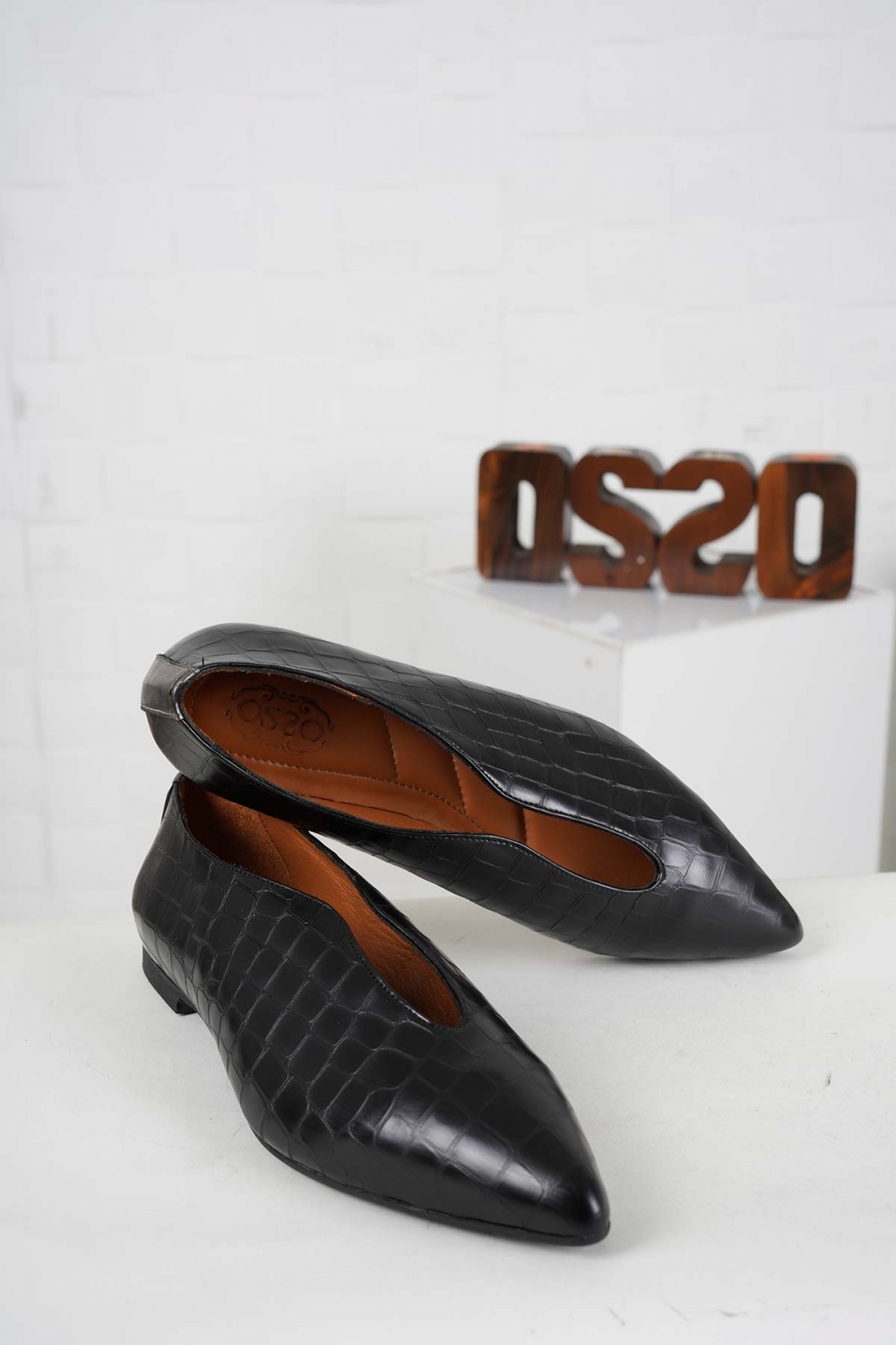 Hakiki Deri Siyah Mat Kroko Kadın Babet Ayakkabı 242127116