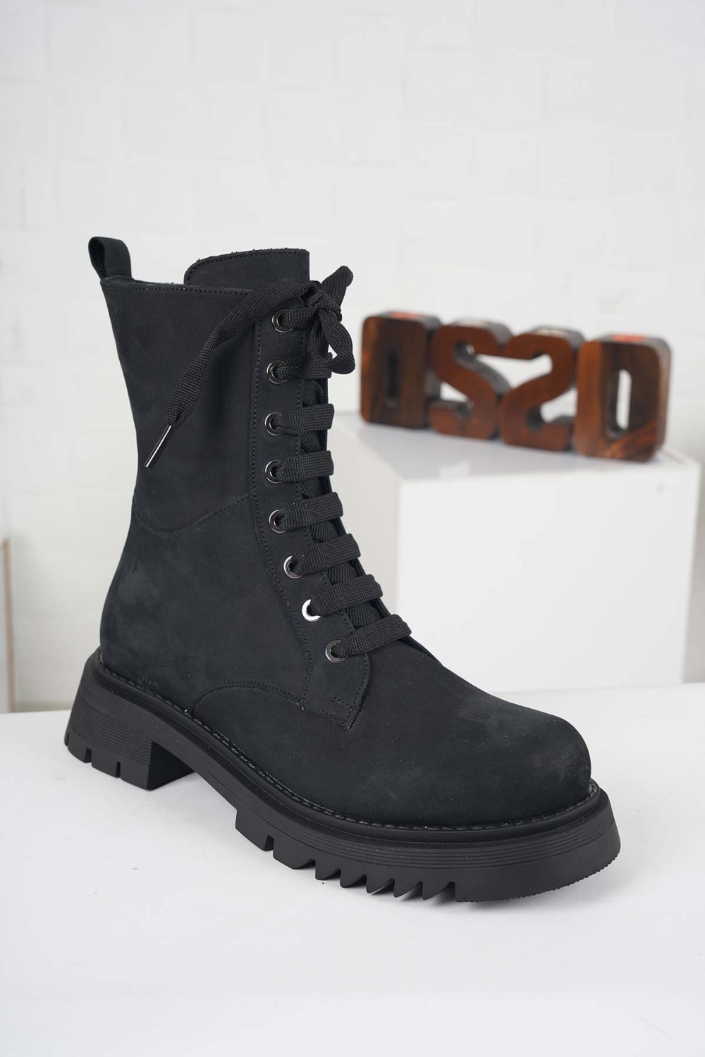 Hakiki Deri Siyah Nubuk Kadın Postal Bot 212127201