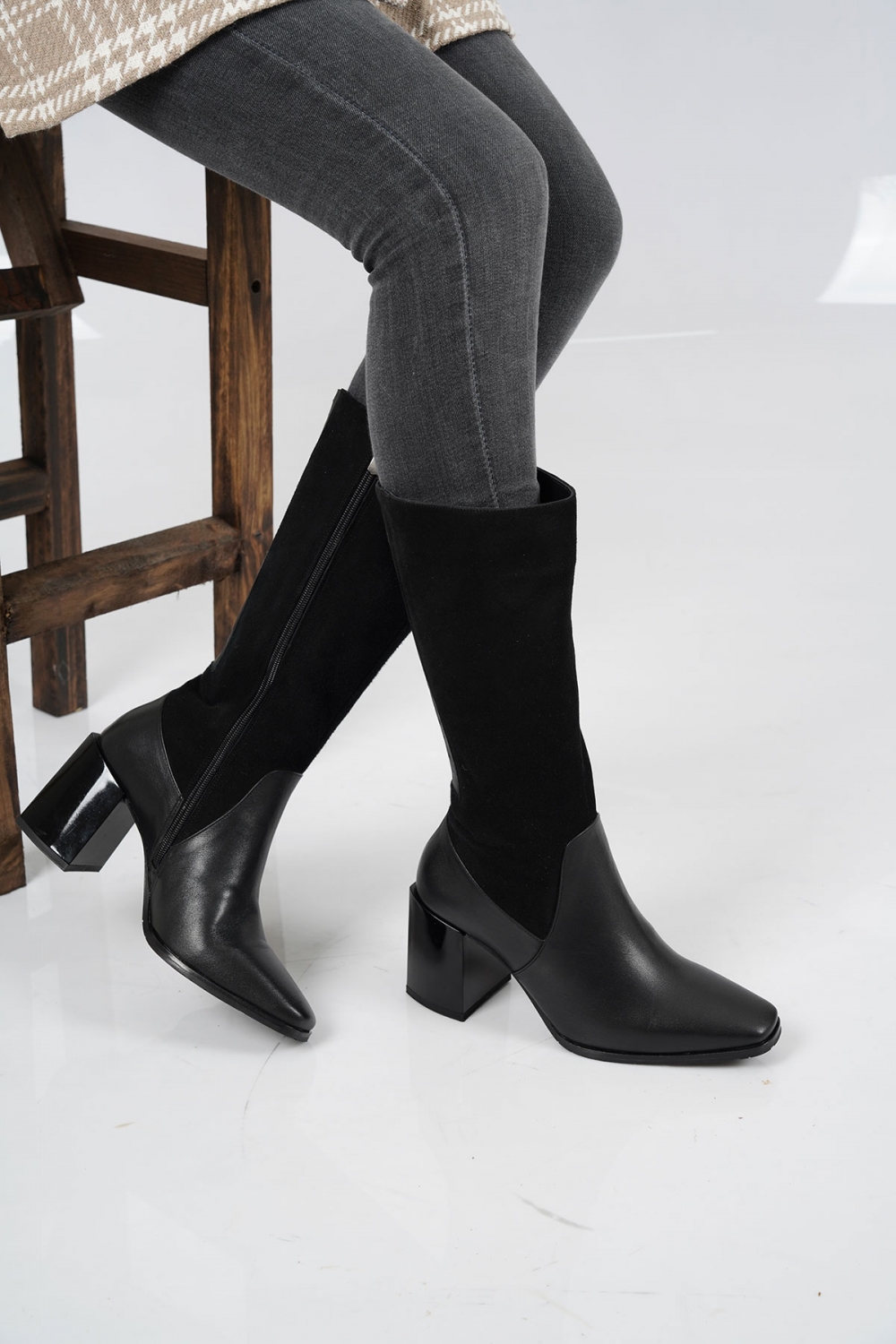 Hakiki Deri Siyah Kadın Topuklu Çizme 232186302