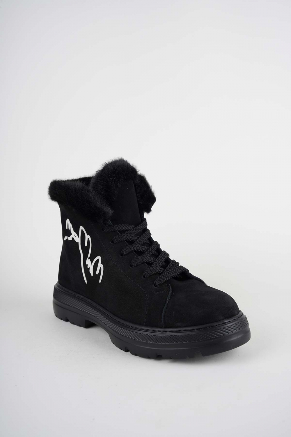 Hakiki Deri Kürklü Siyah Kadın Casual Bot 252136212