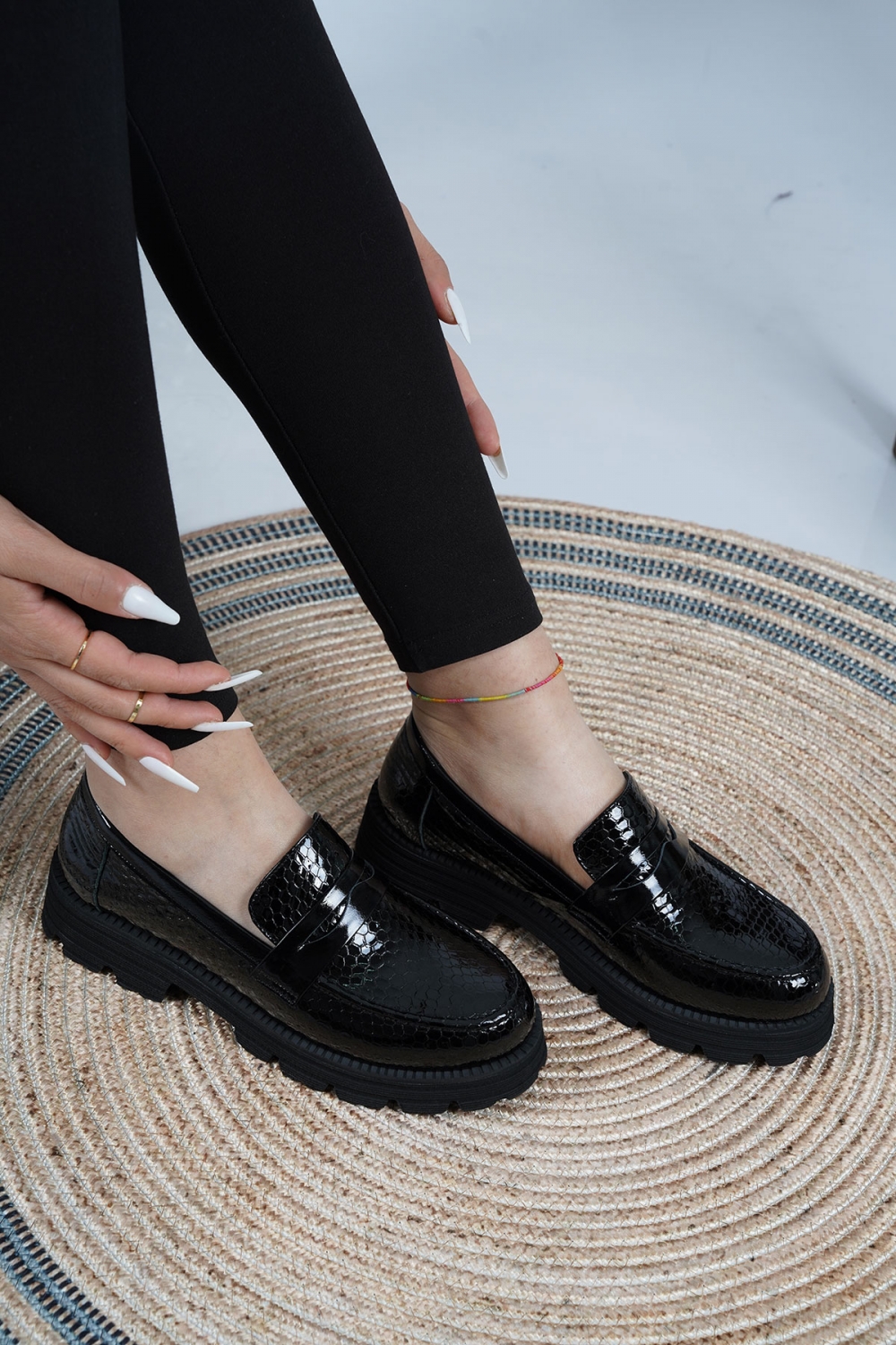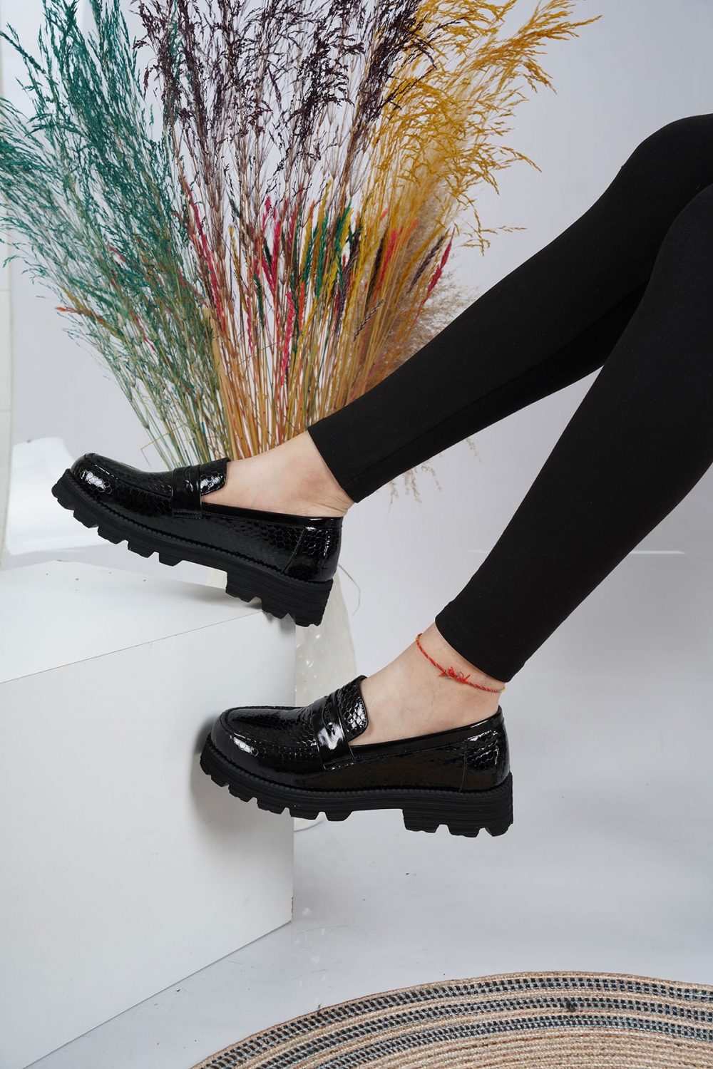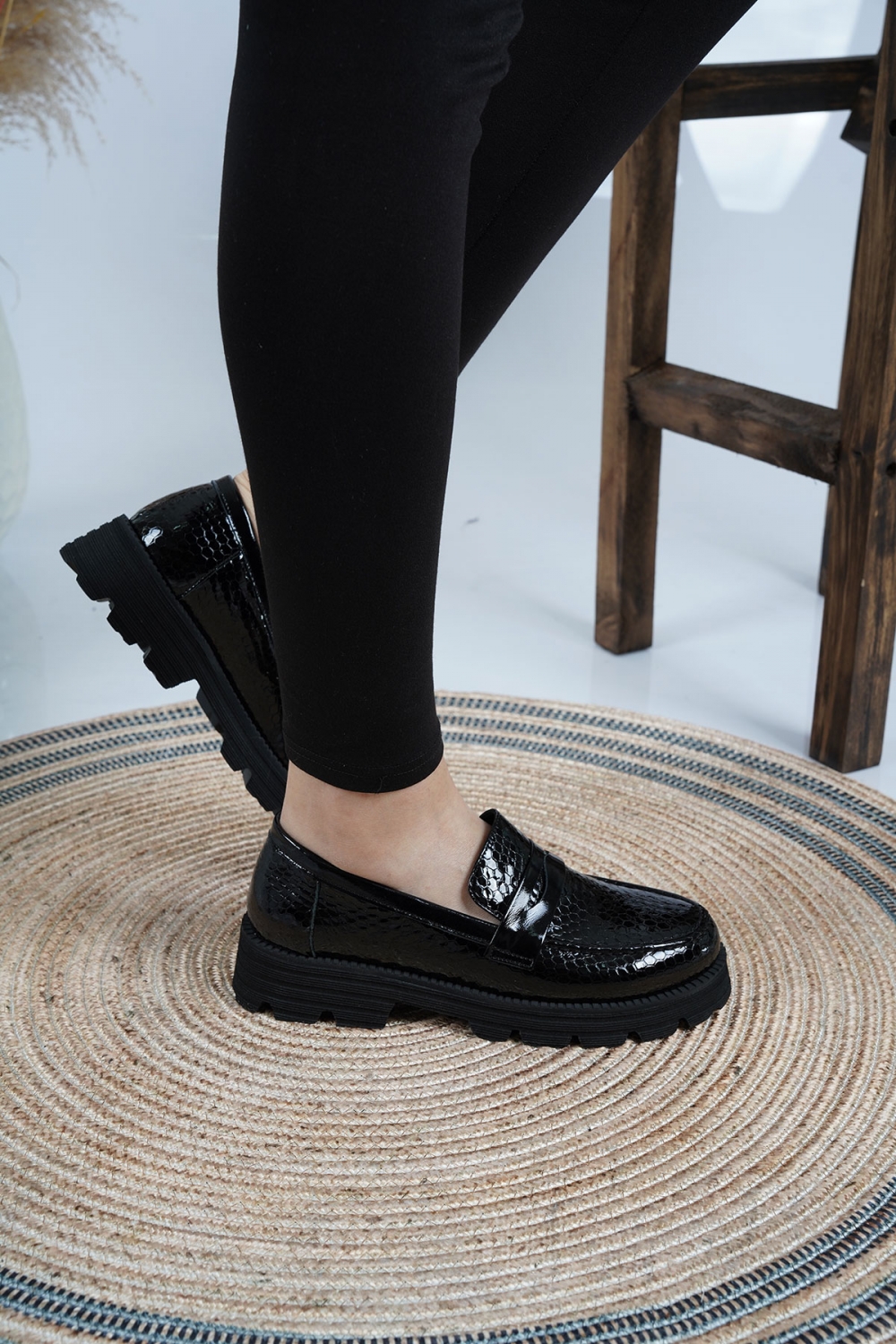 Hakiki Deri Siyah Petek Rugan Kadın Makosen Ayakkabı 222134102