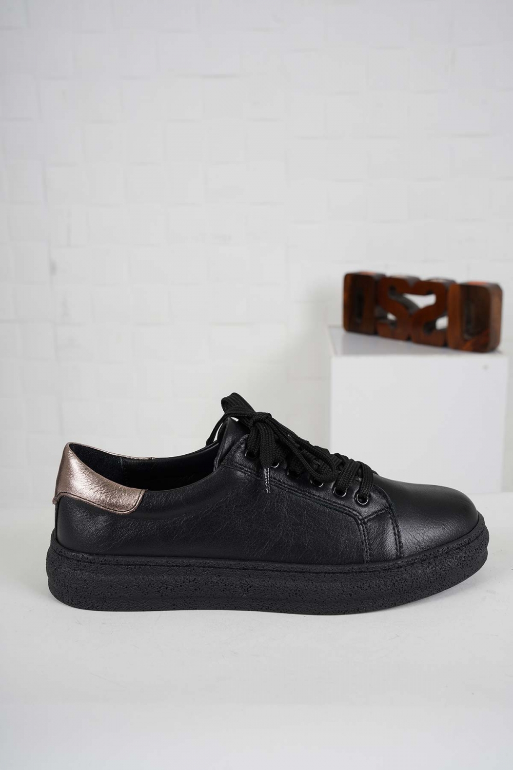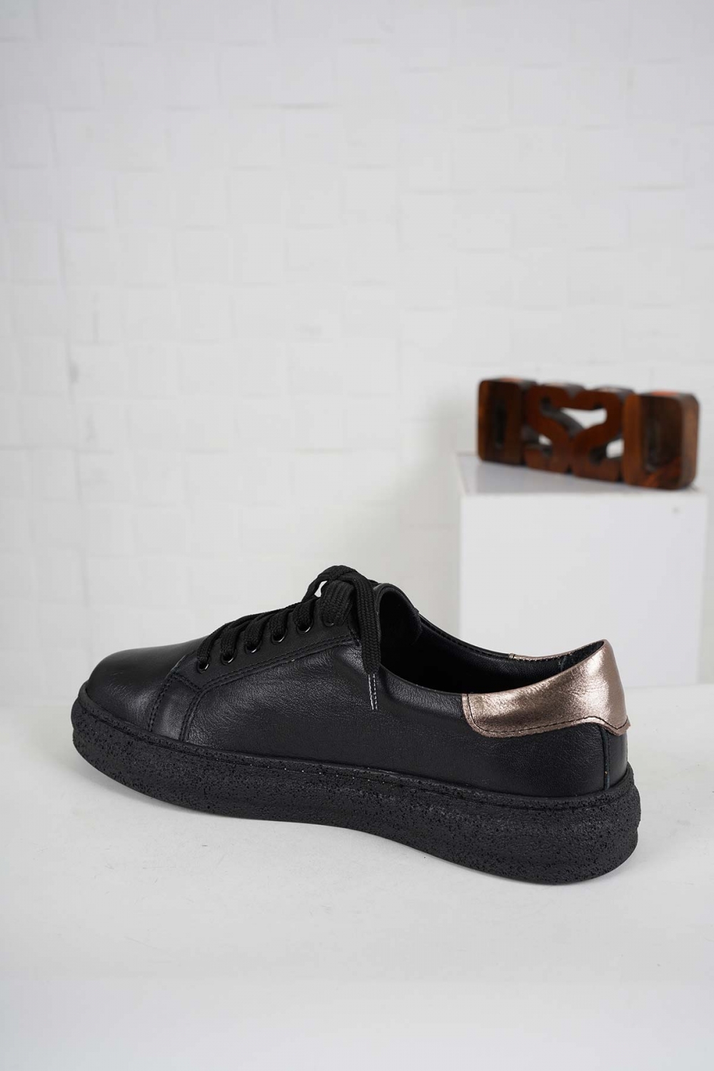 Hakiki Deri Siyah-Altın Kadın Casual Ayakkabı 261186104