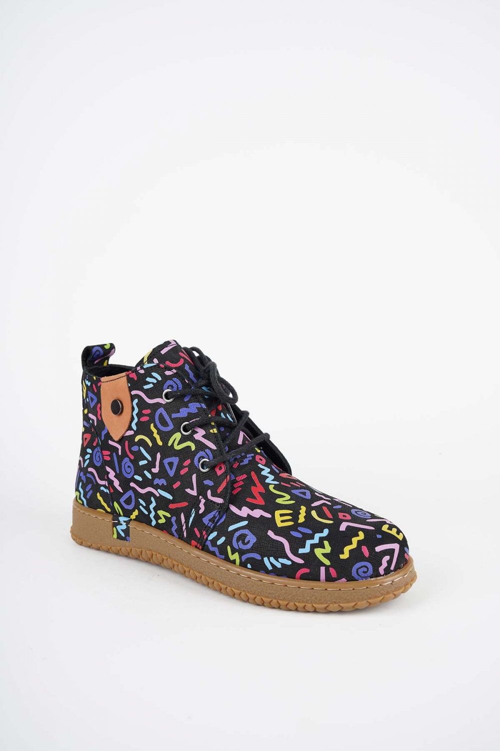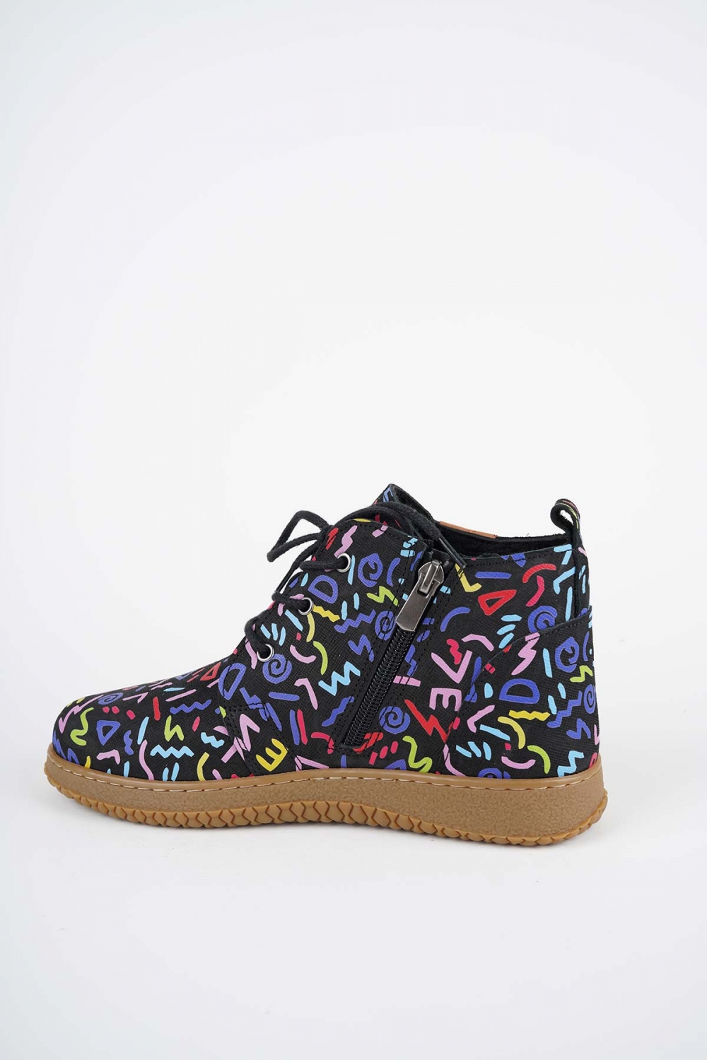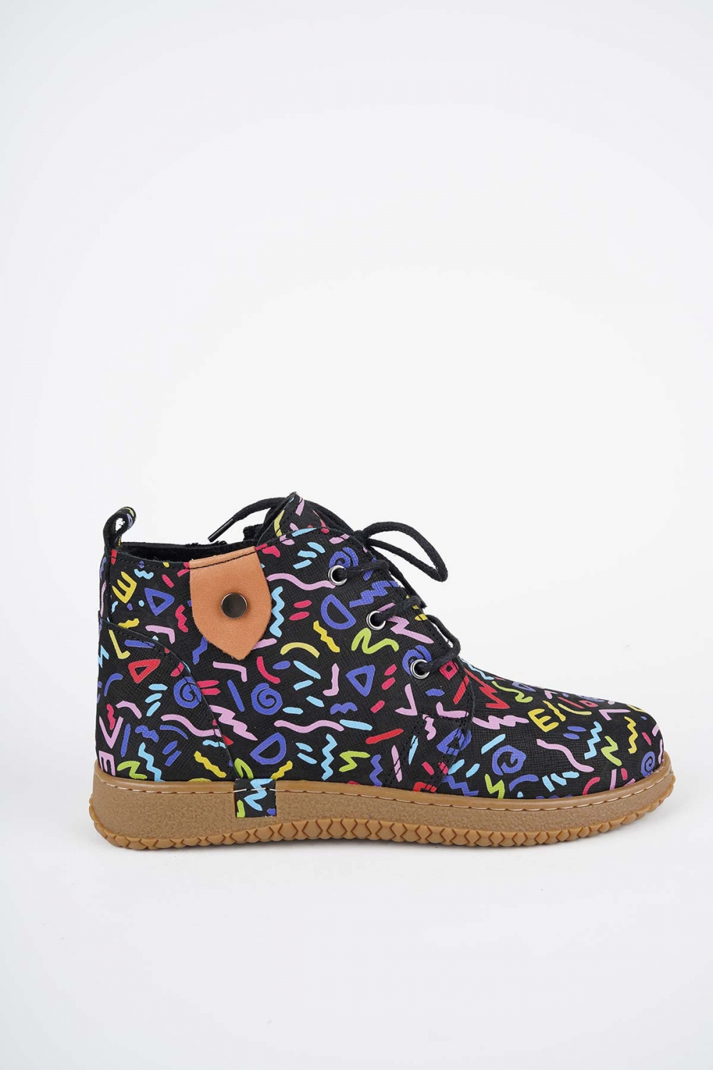 Hakiki Deri Siyah Renkli Baskılı Kadın Casual Bot 252186201
