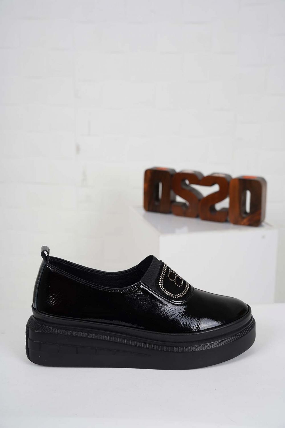 Hakiki Deri Siyah Rugan Kadın Casual Ayakkabı 232199106