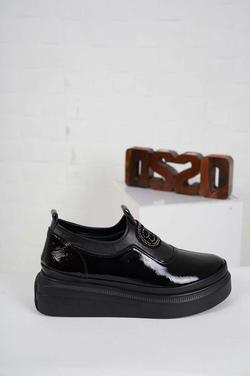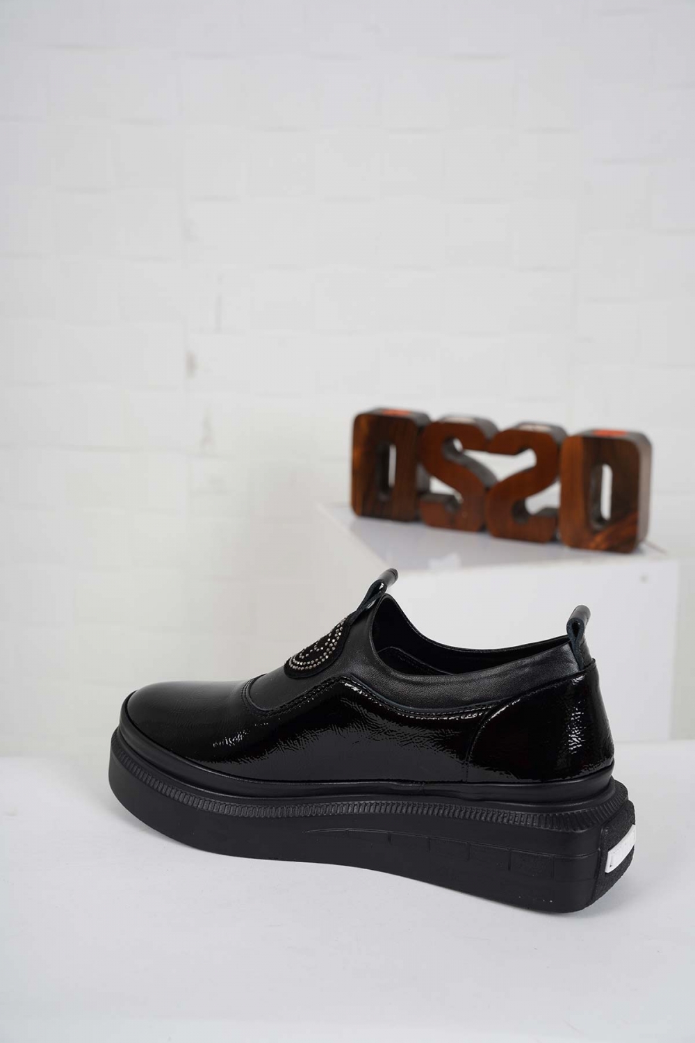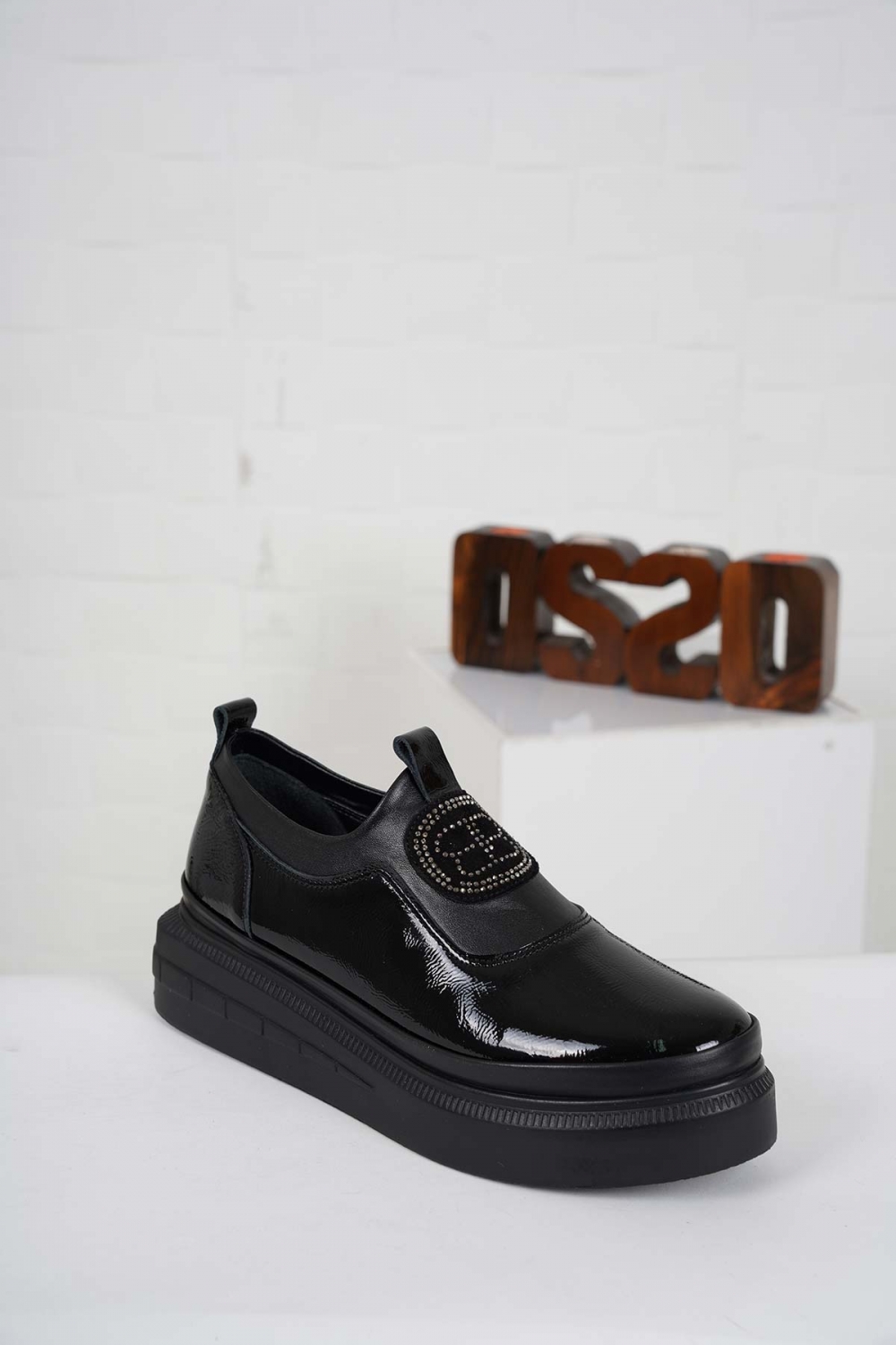 Hakiki Deri Siyah Rugan Kadın Casual Ayakkabı 232199107