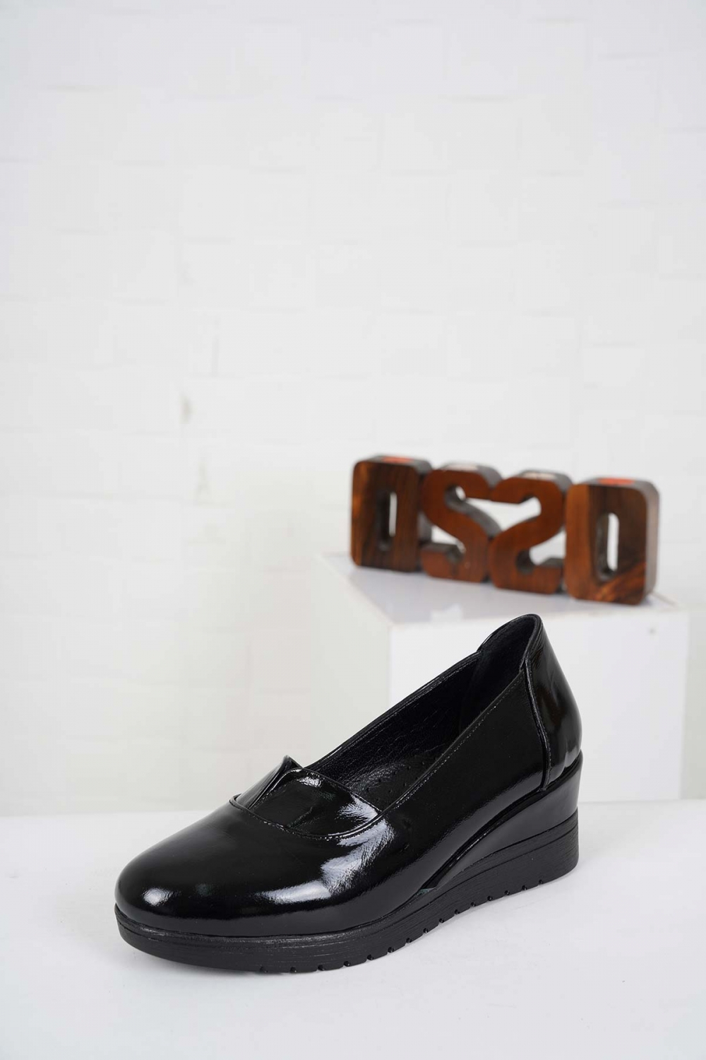Hakiki Deri Siyah Rugan Kadın Dolgu Topuklu Ayakkabı 232136105