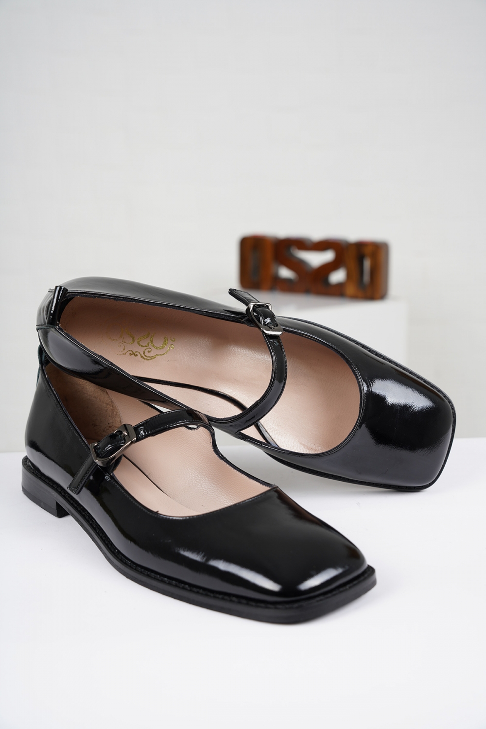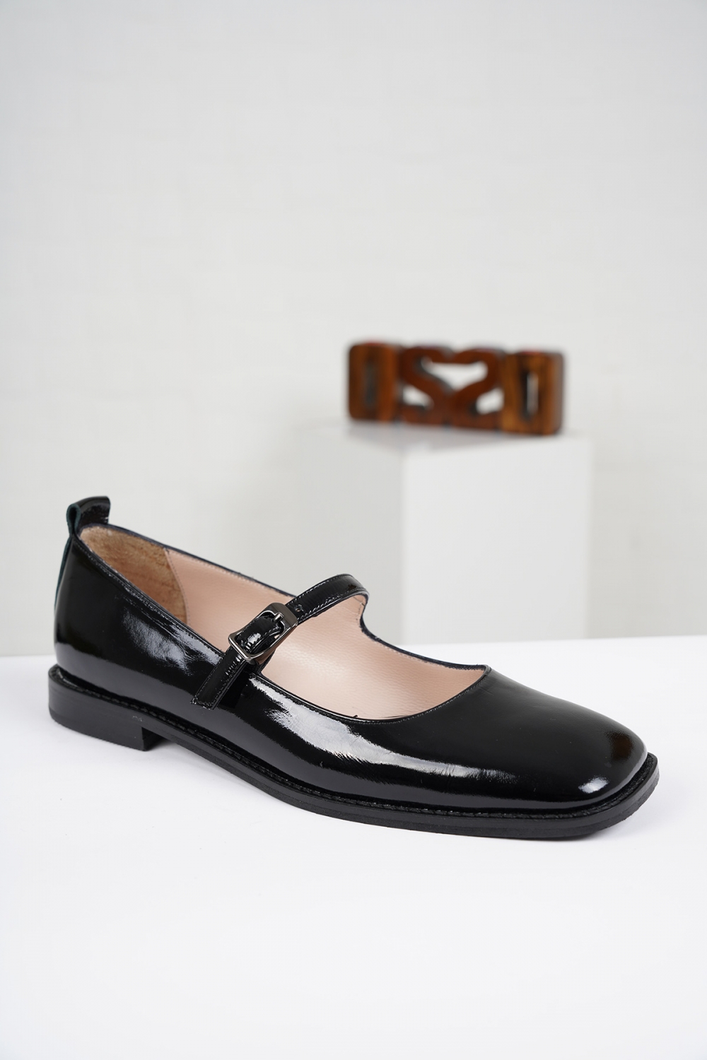Hakiki Deri Siyah Rugan Kadın Klasik Ayakkabı 221127106