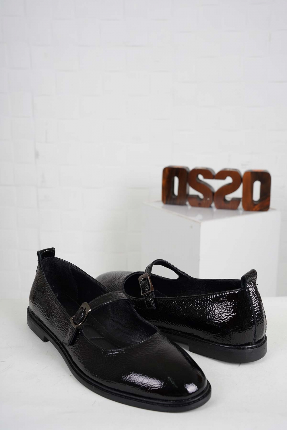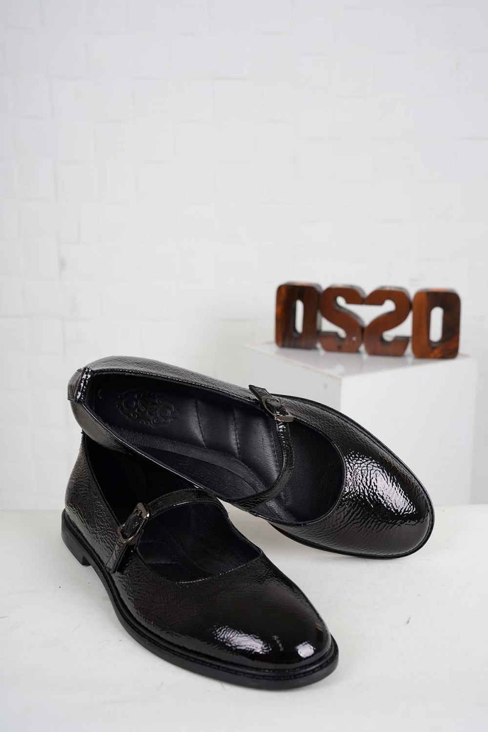 Hakiki Deri Siyah Rugan Kadın Klasik Ayakkabı 241127114
