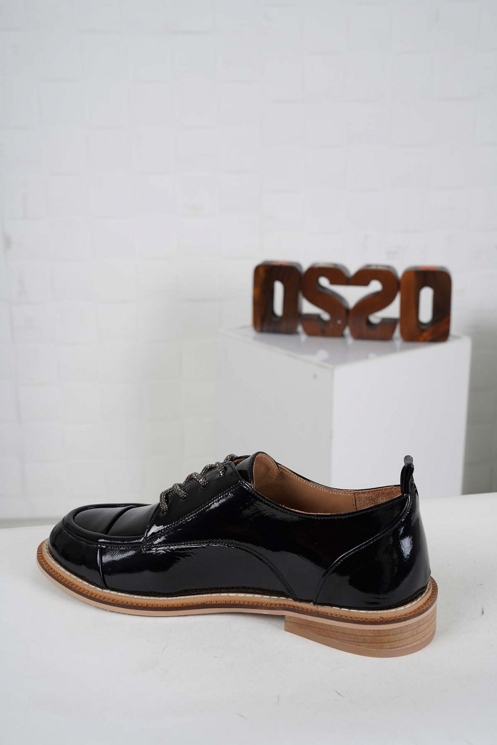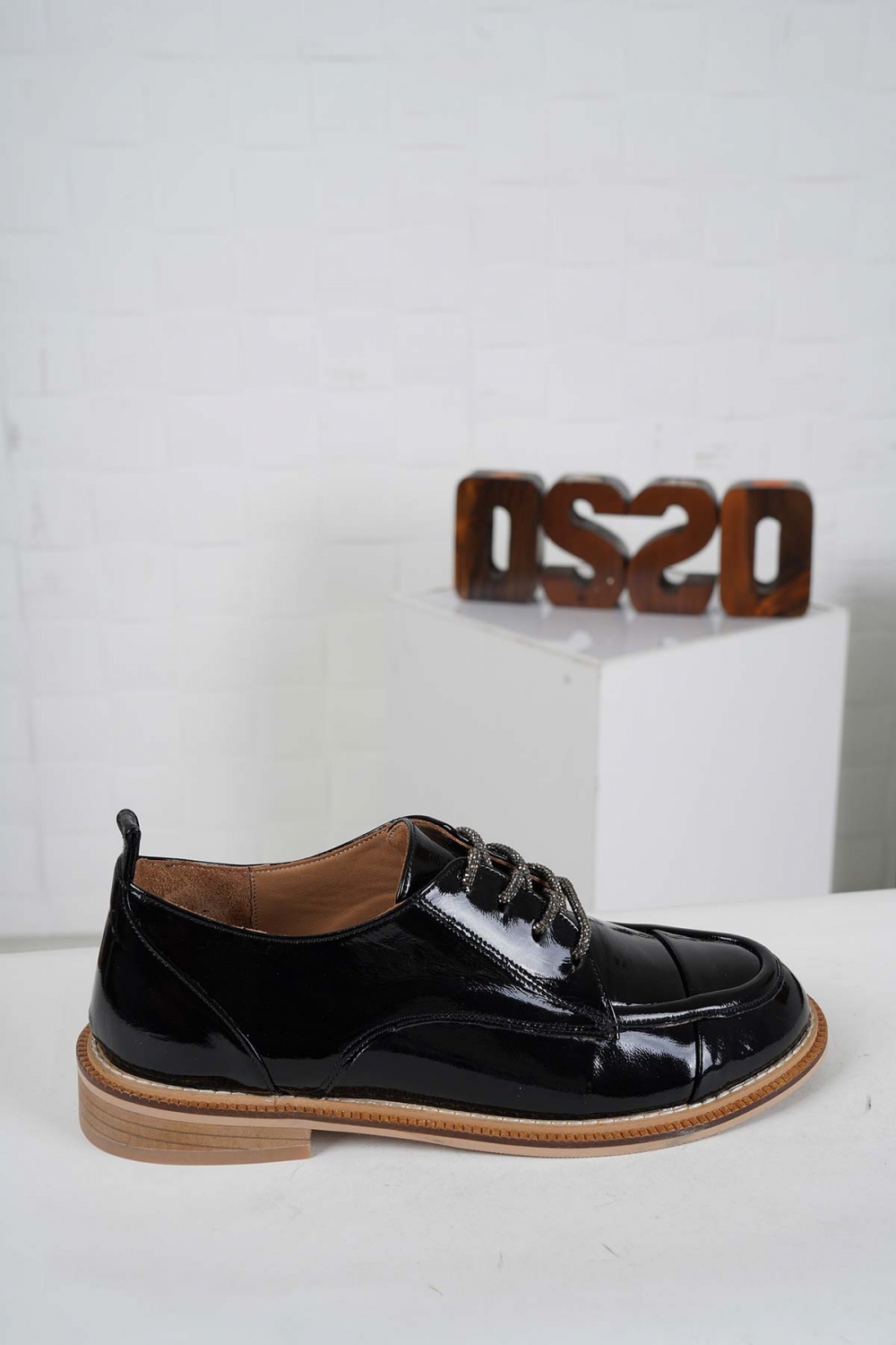 Hakiki Deri Siyah Rugan Kadın Oxford Ayakkabı 242141101