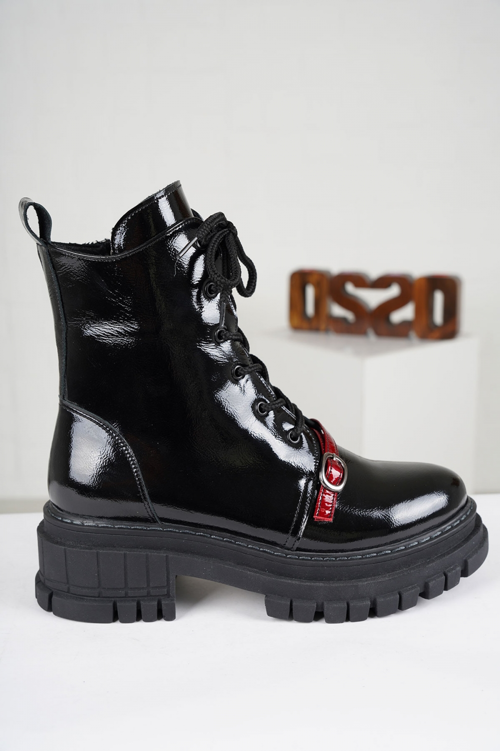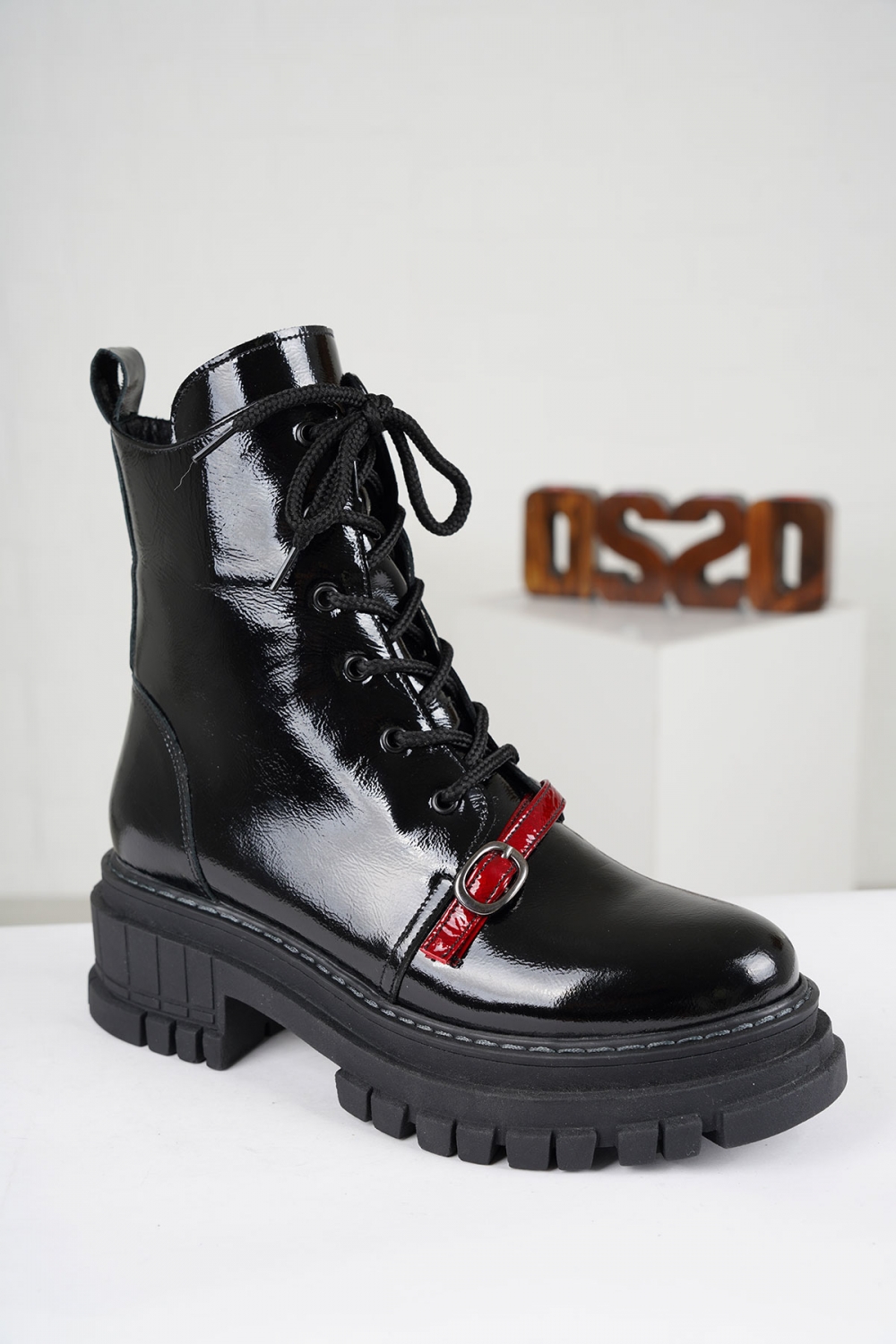 Hakiki Deri Siyah Baskılı Kadın Casual Bot 252136213