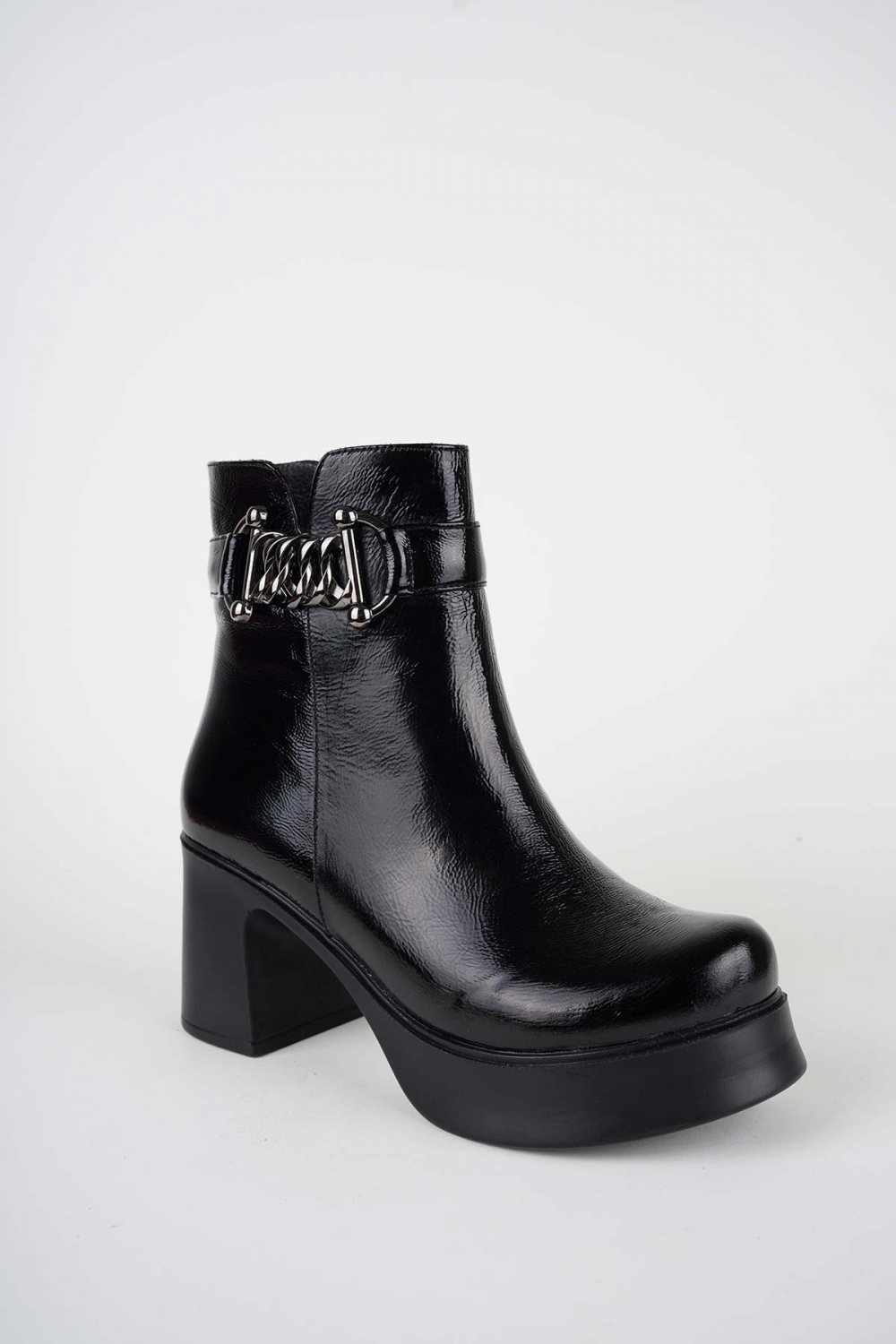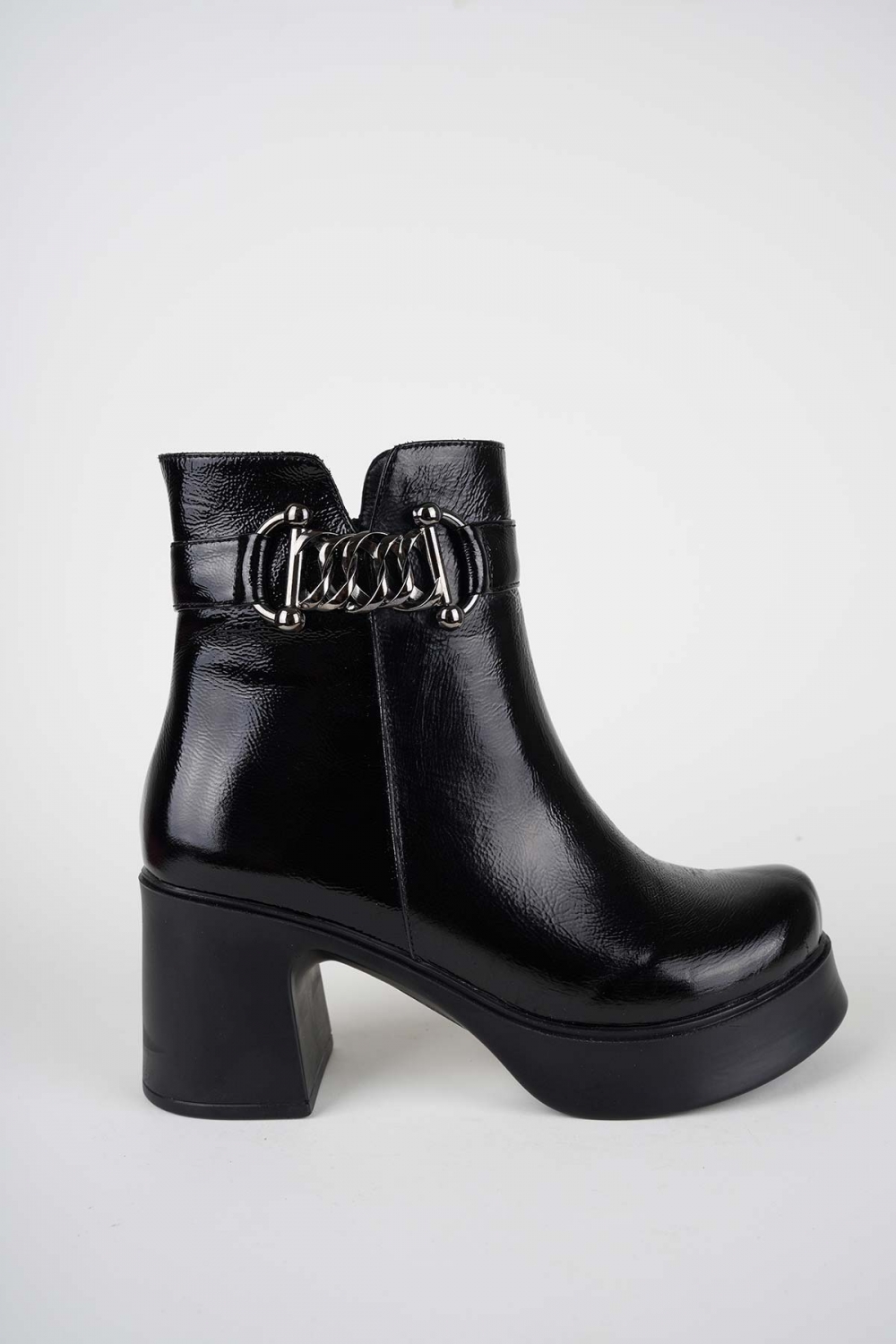 Hakiki Deri Siyah Rugan Kadın Topuklu Bot 252229202