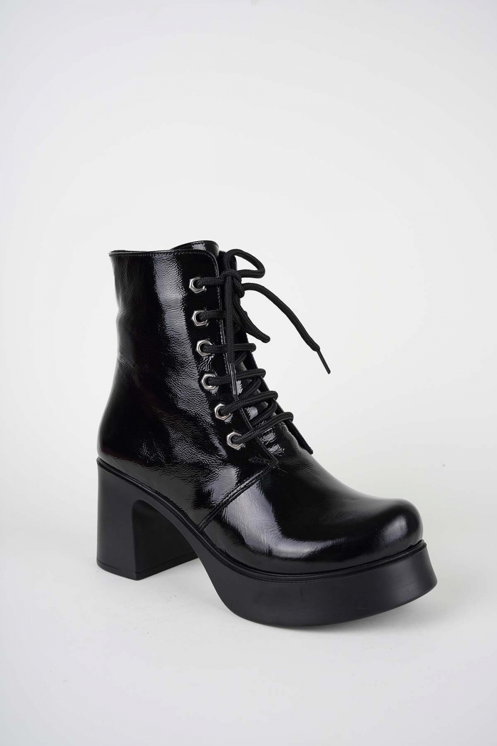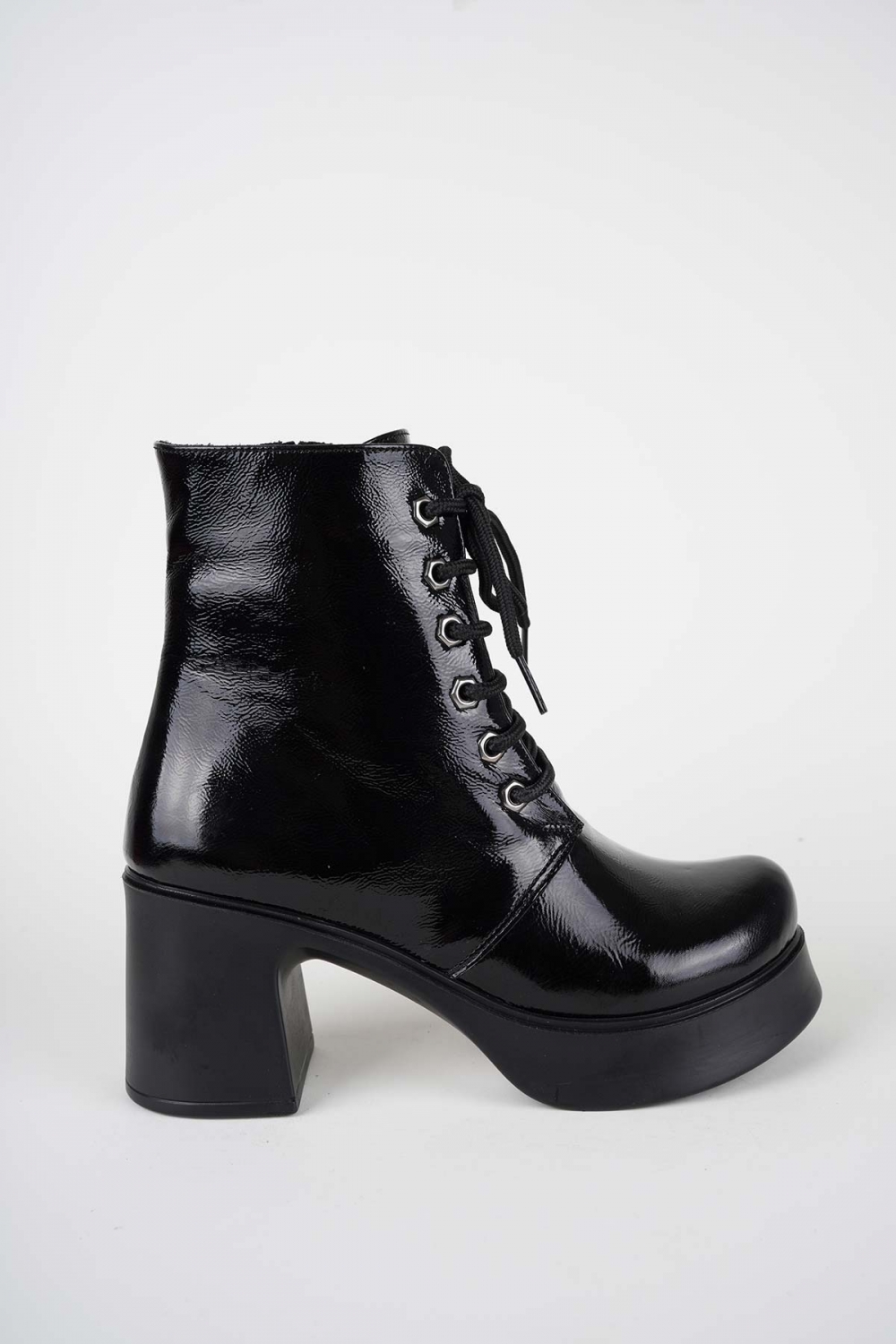 Hakiki Deri Siyah Rugan Kadın Topuklu Bot 252229203
