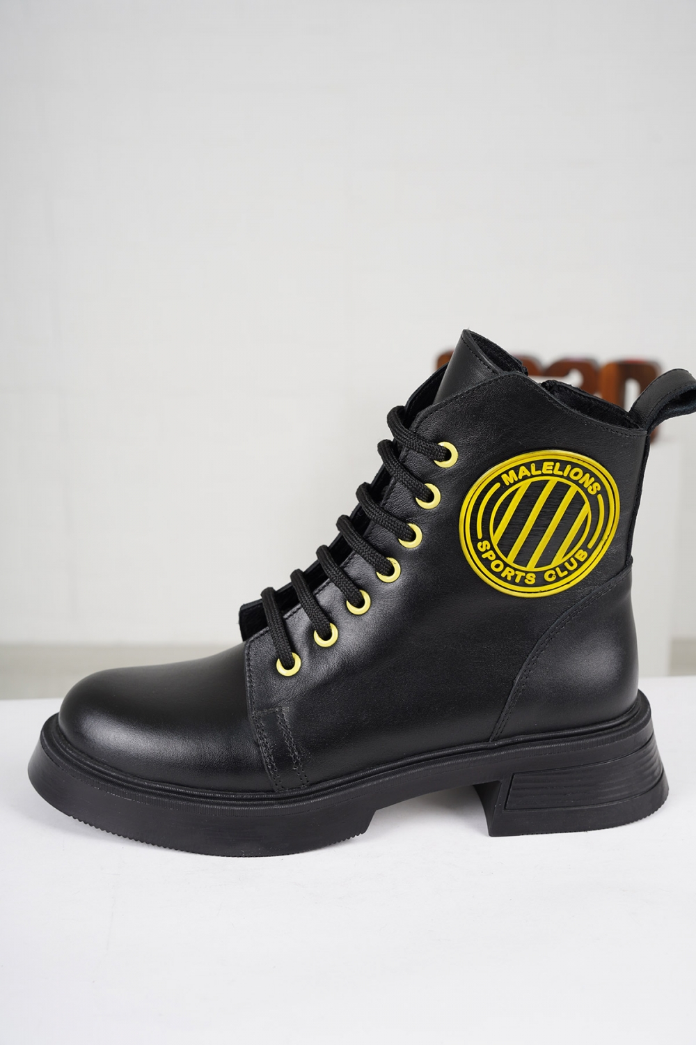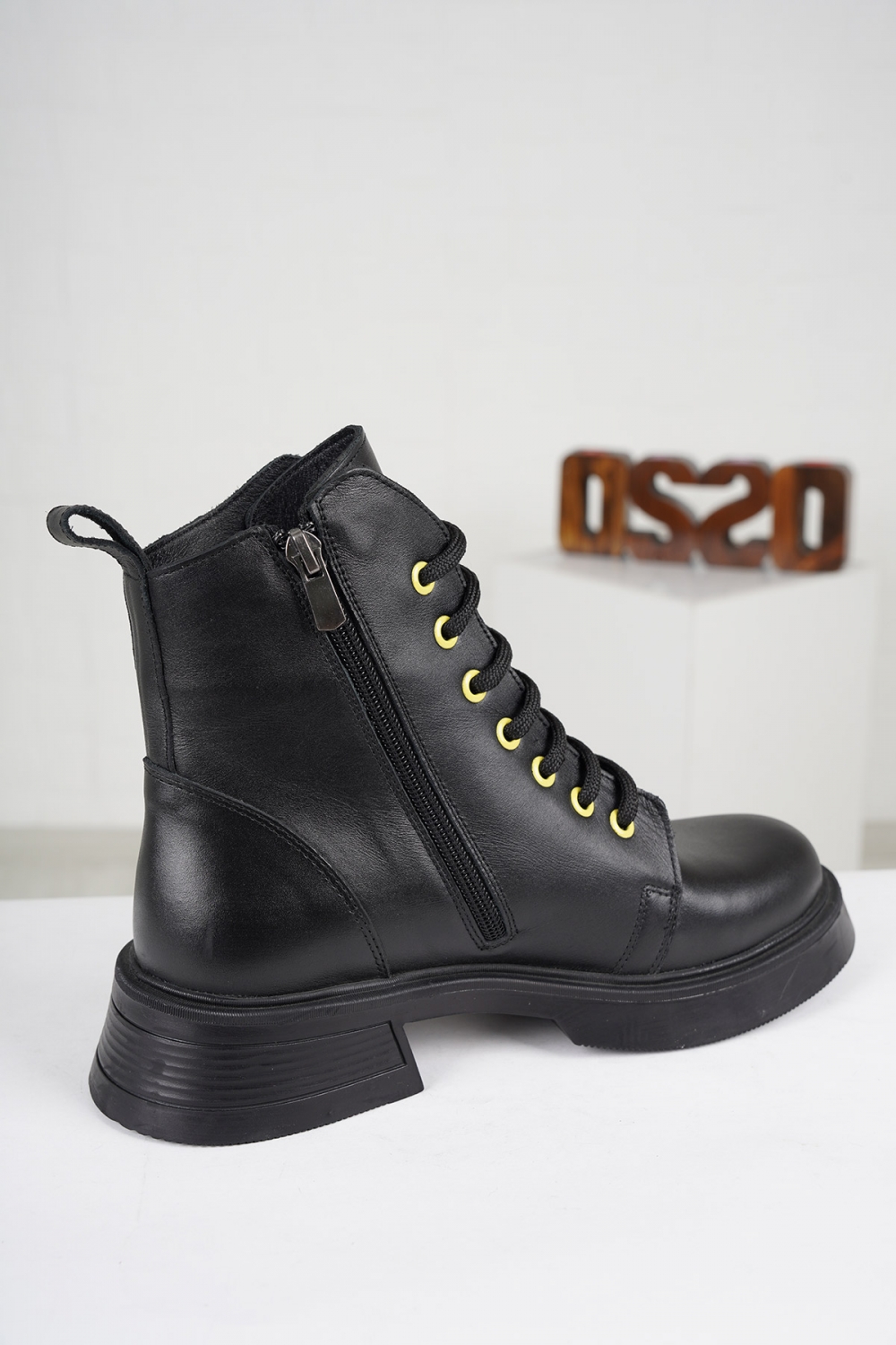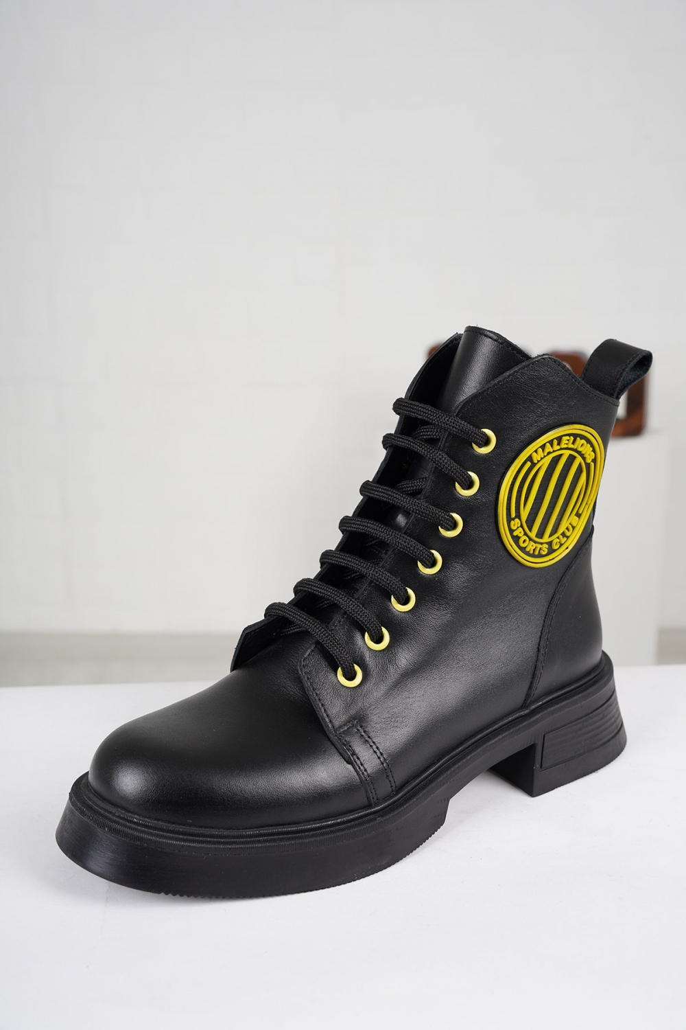 Hakiki Deri Siyah-Sarı Kadın Postal Bot 222172204