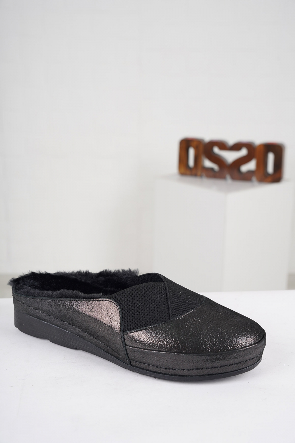 Hakiki Deri Siyah Saten Kadın Burun Kapalı Sabo 222177601