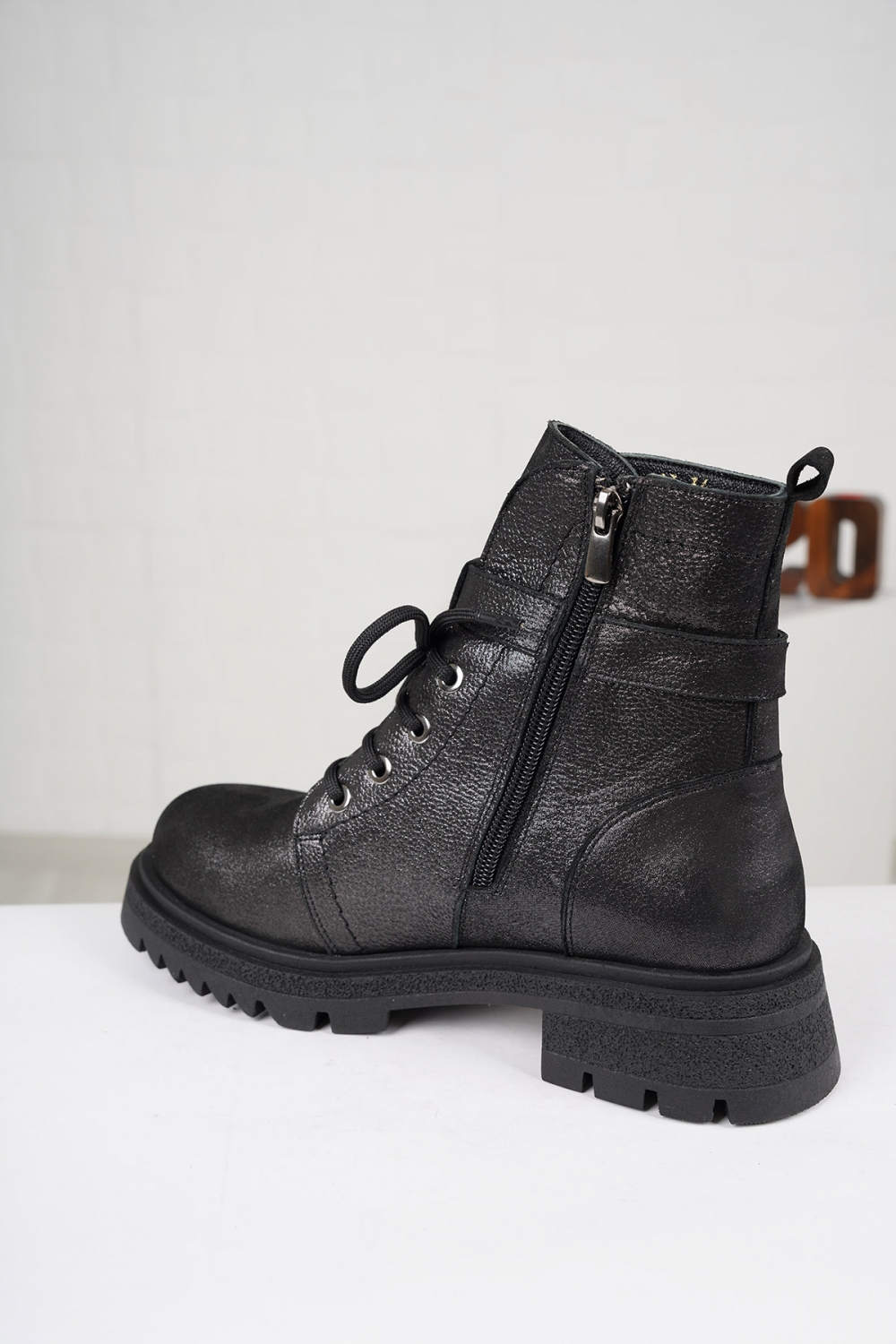 Hakiki Deri Siyah Saten Kadın Kısa Bot 222177205