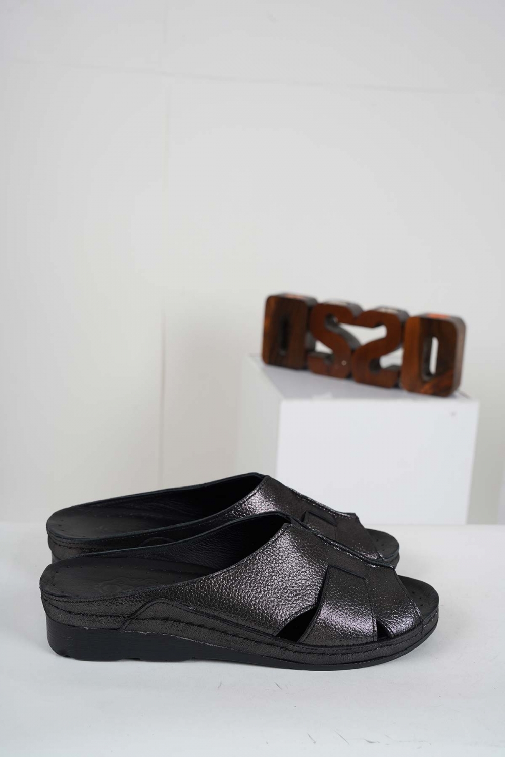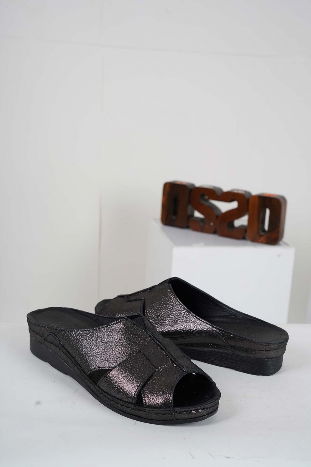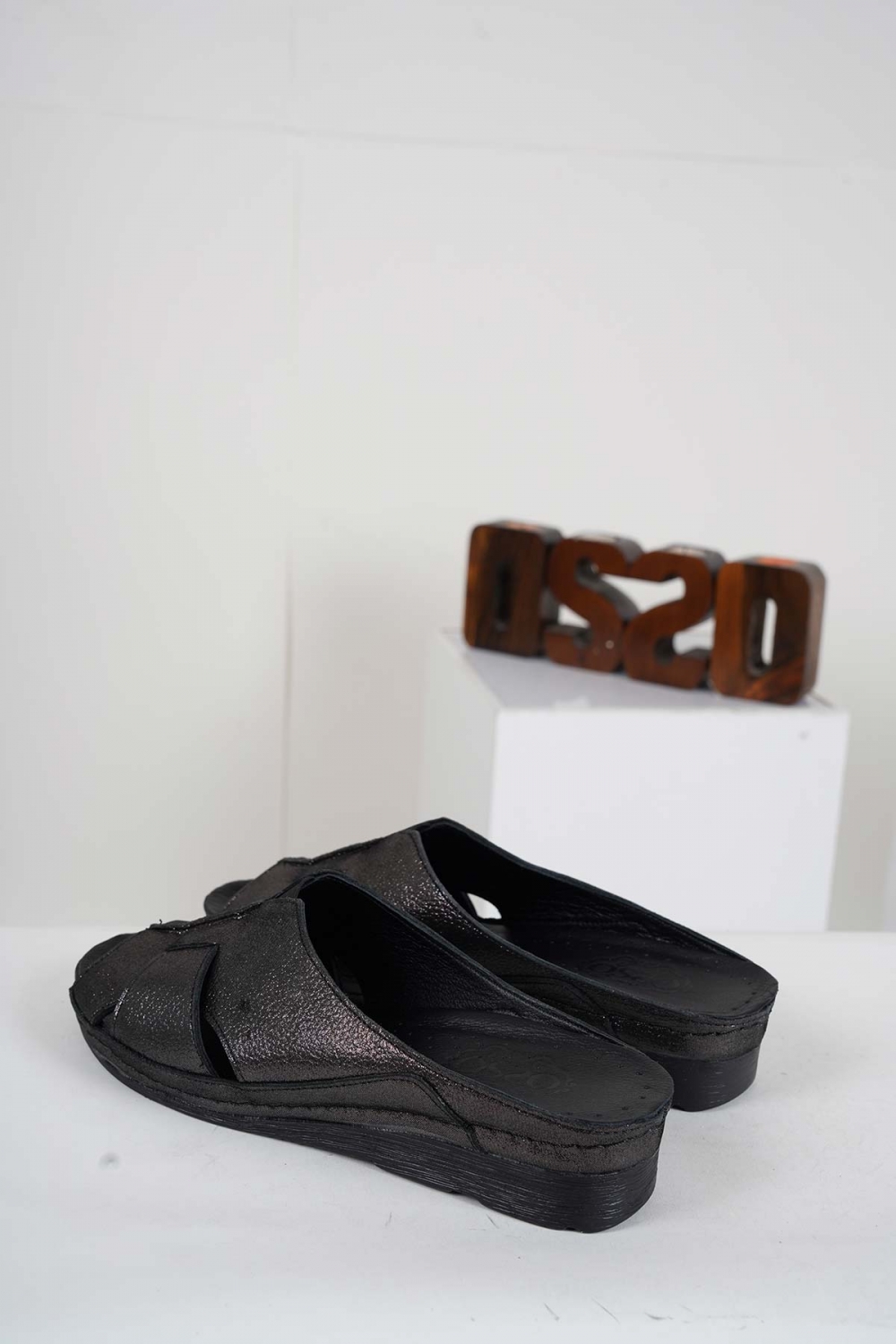 Hakiki Deri Siyah Saten Kadın Komfort Terlik 241177602