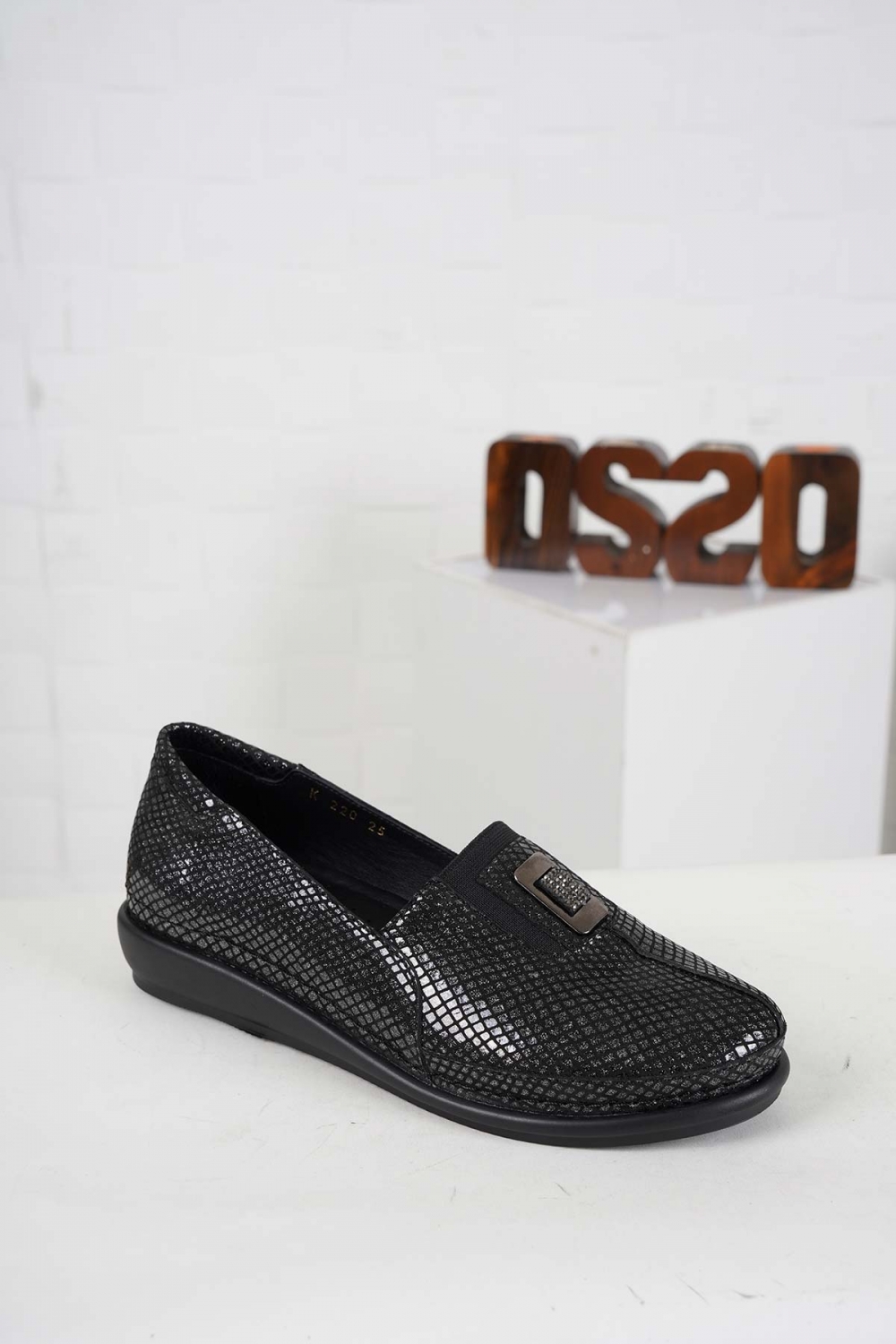 Hakiki Deri Siyah Simli Yılan Baskı Kadın Comfort Ayakkabı 242177102