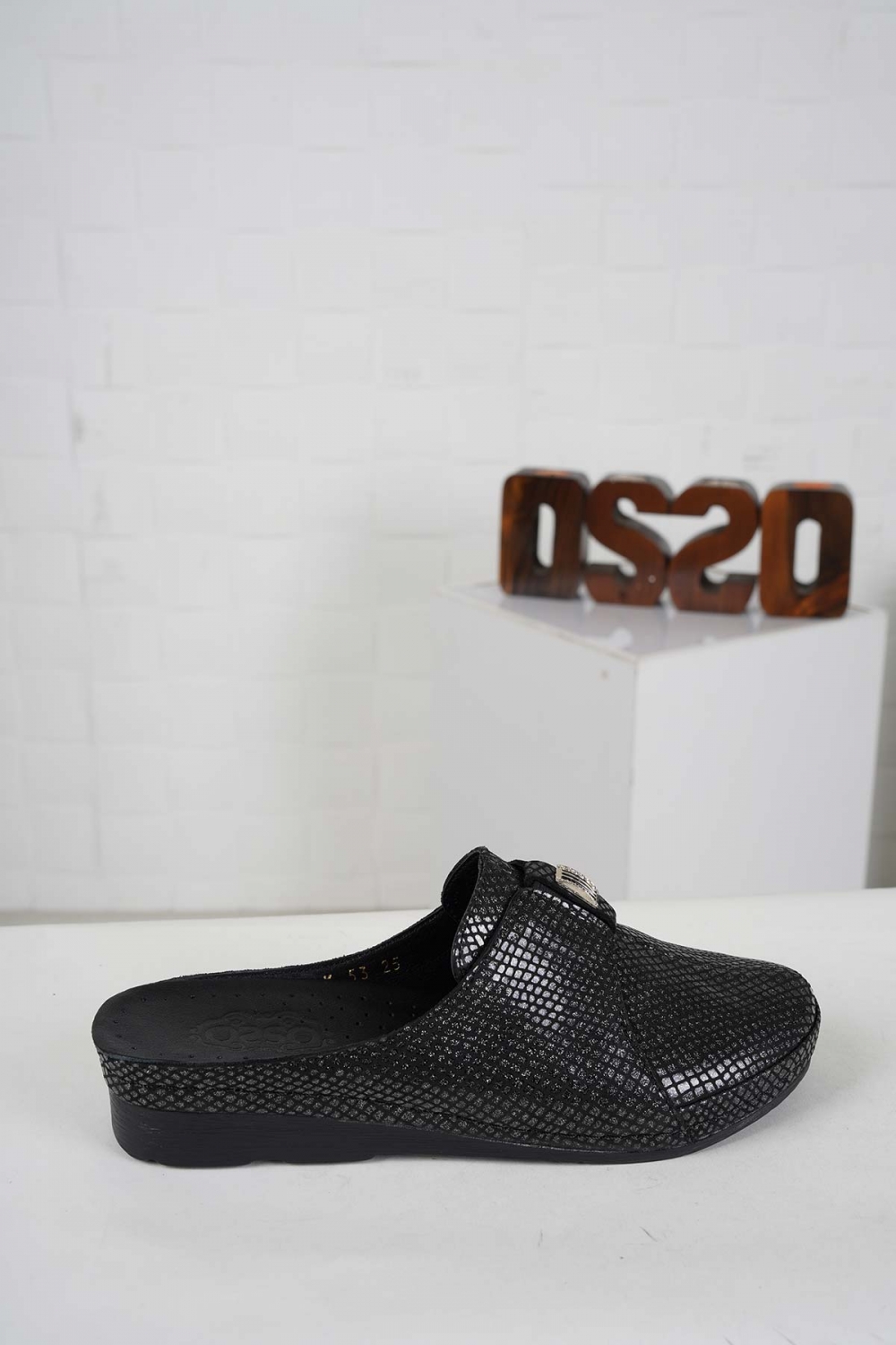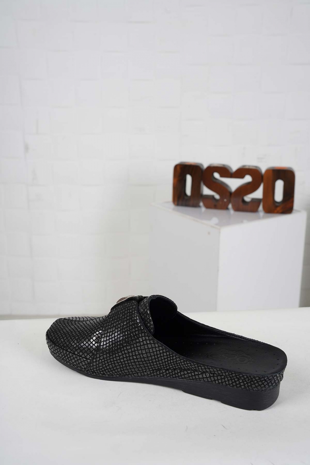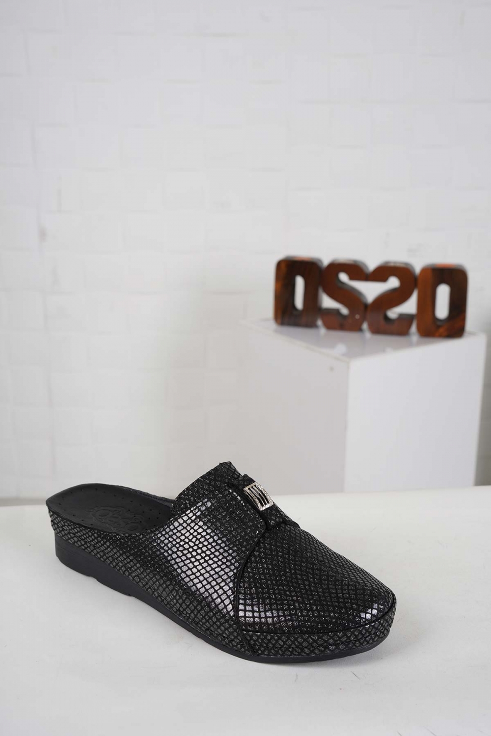 Hakiki Deri Siyah Simli Yılan Baskı Kadın Comfort Sabo 242177703