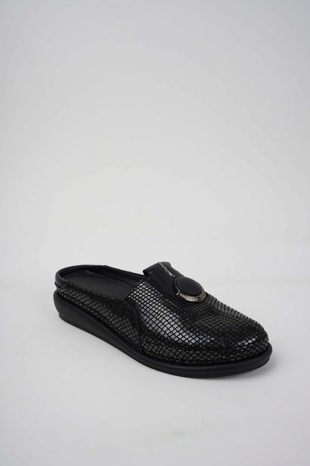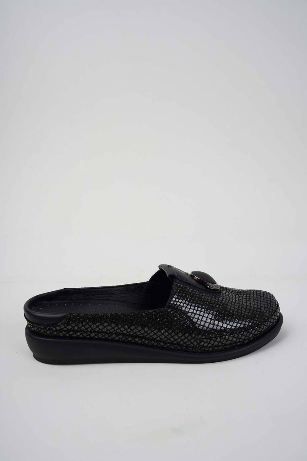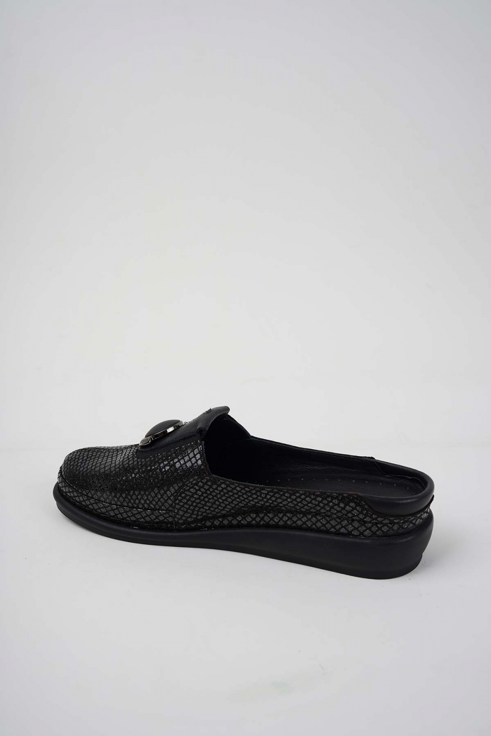 Hakiki Deri Siyah Simli Yılan Baskı Kadın Comfort Sabo 242177706