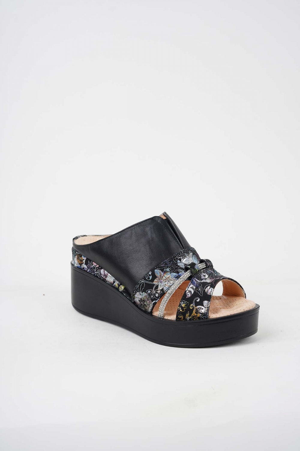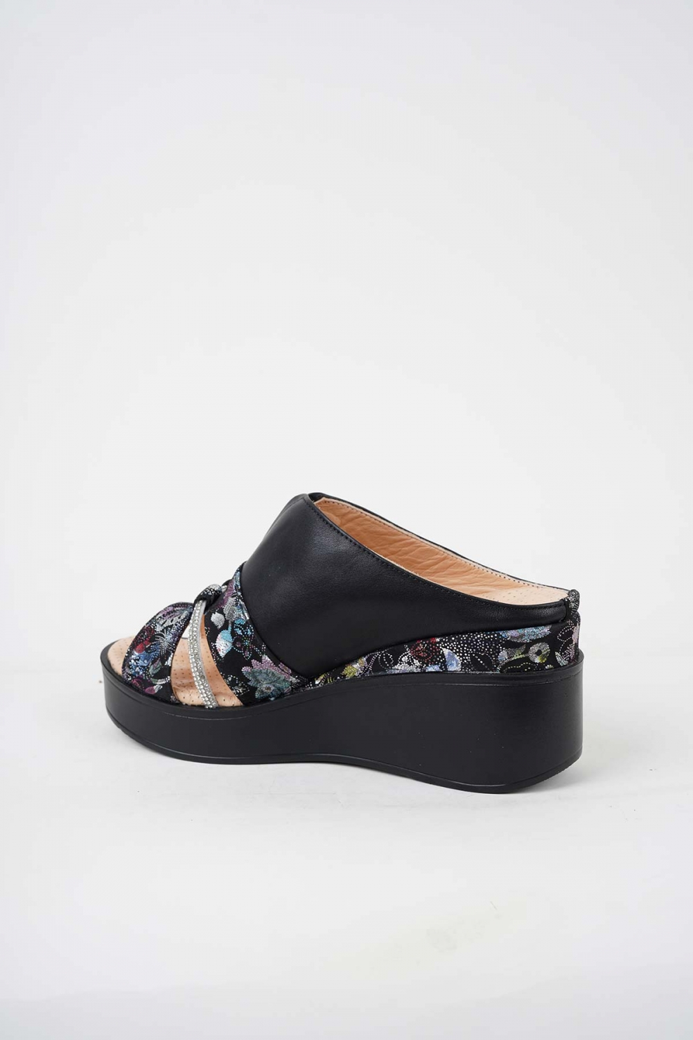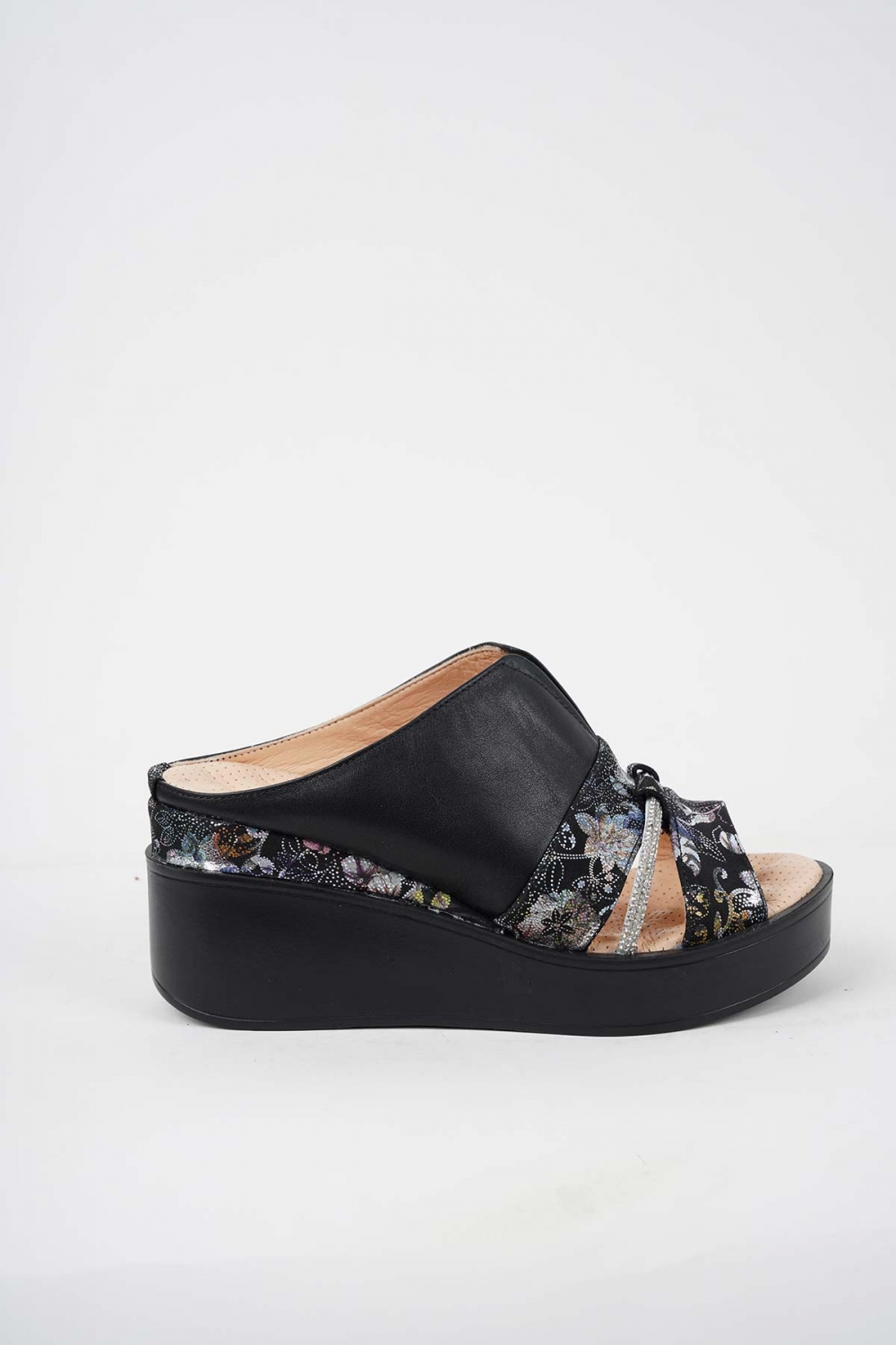 Hakiki Deri Siyah-Siyah Baskılı Kadın Dolgu Topuk Terlik 251136601