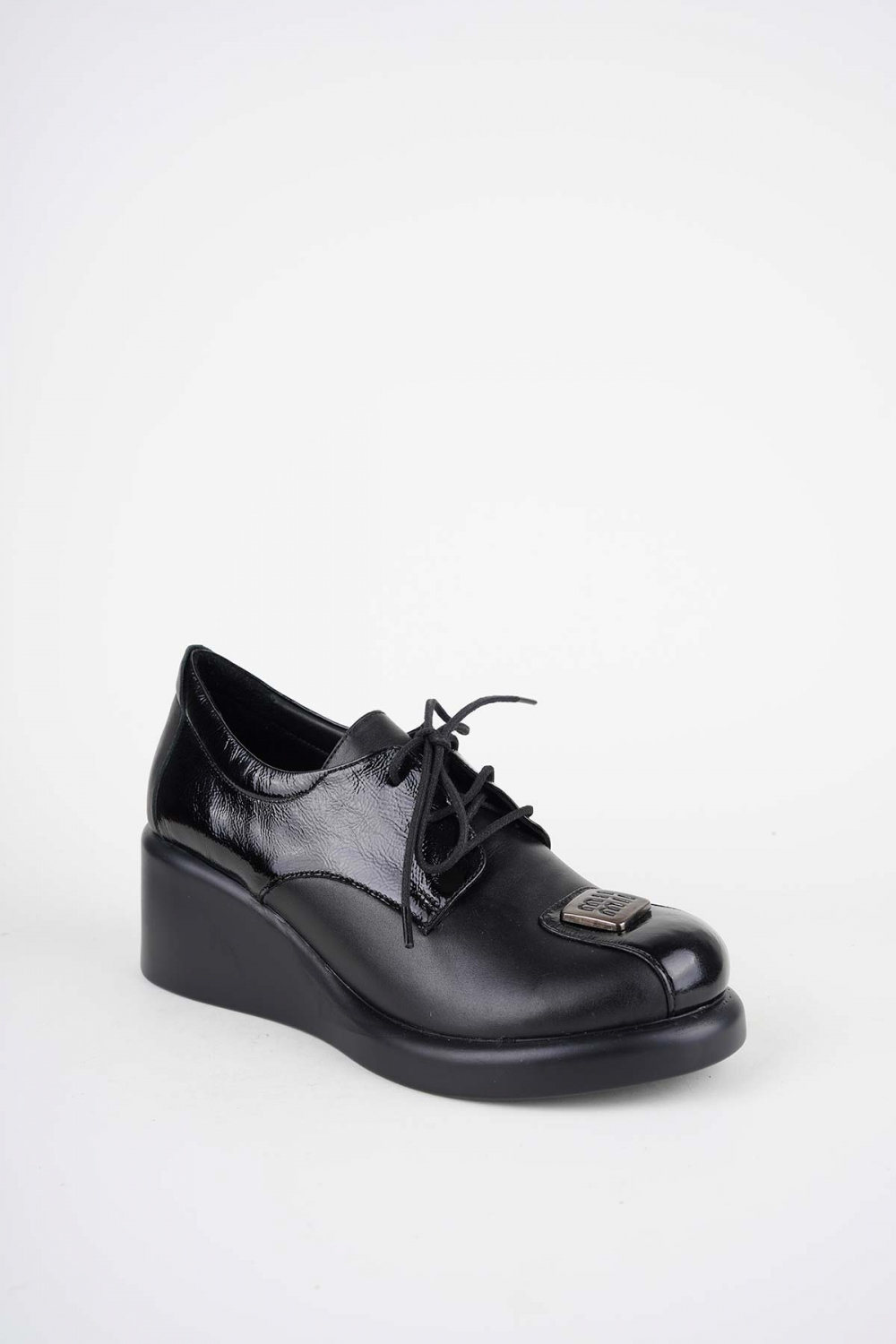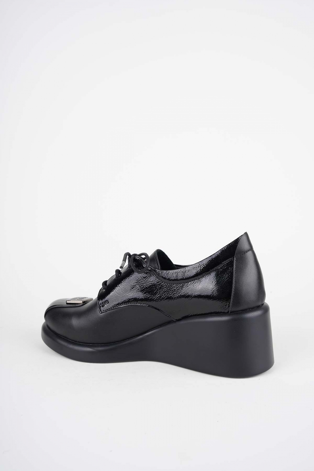 Hakiki Deri Siyah-Siyah Rugan Kadın Dolgu Topuklu Ayakkabı 252229105