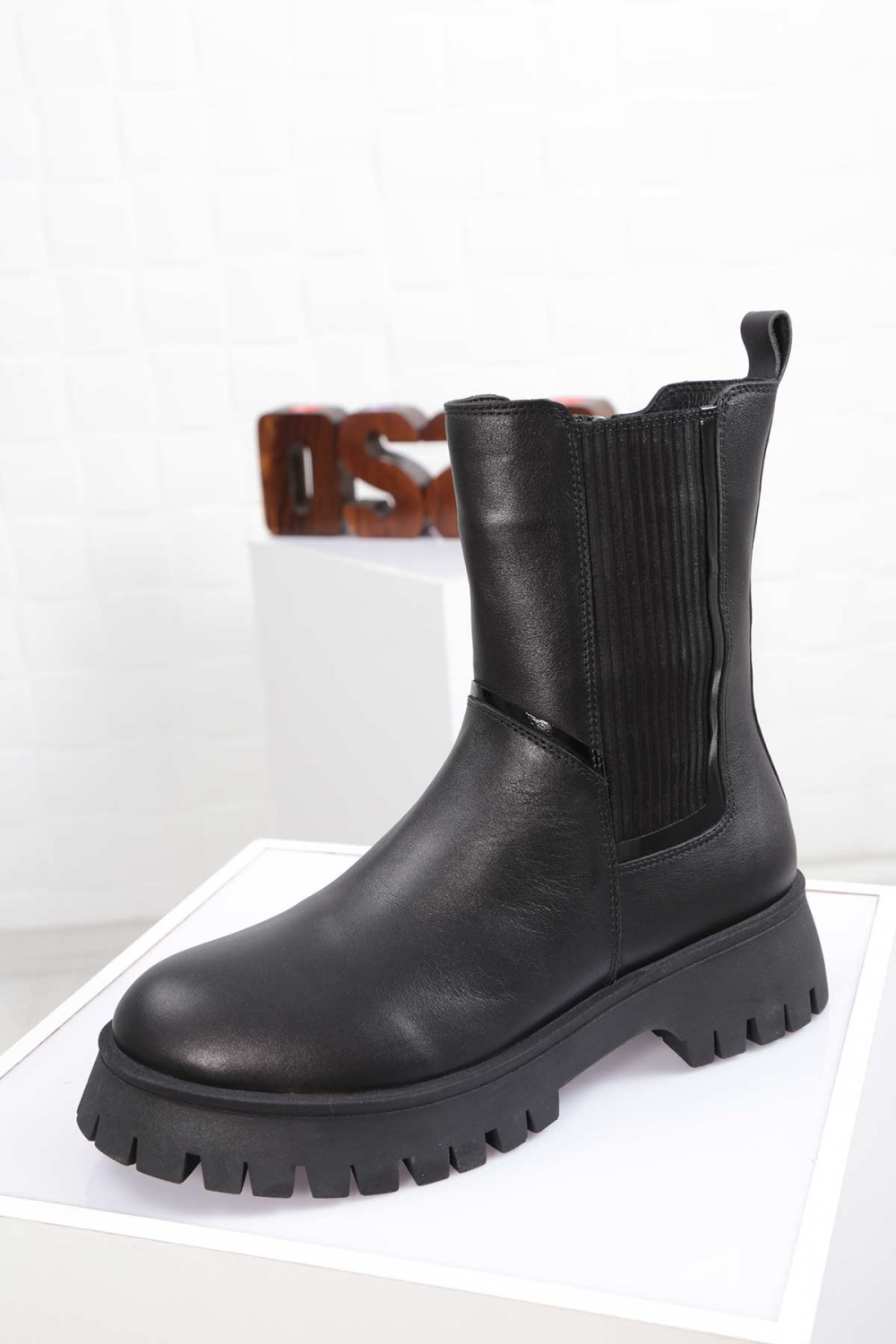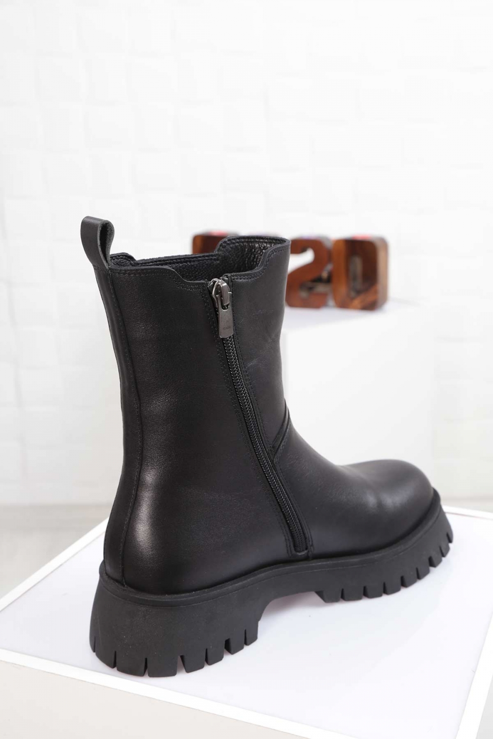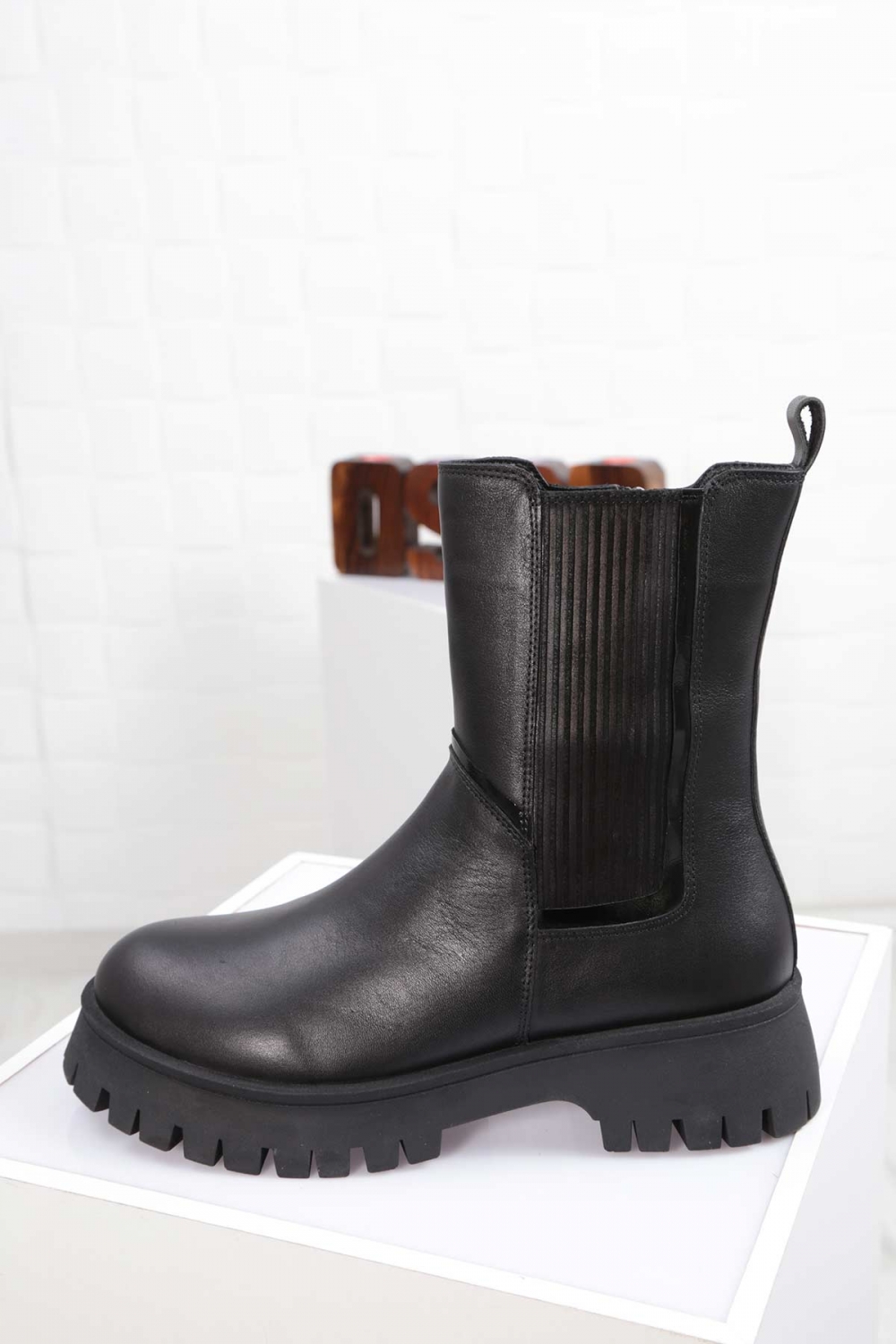 Hakiki Deri Siyah-Siyah Rugan Kadın Düz Bot 212225202