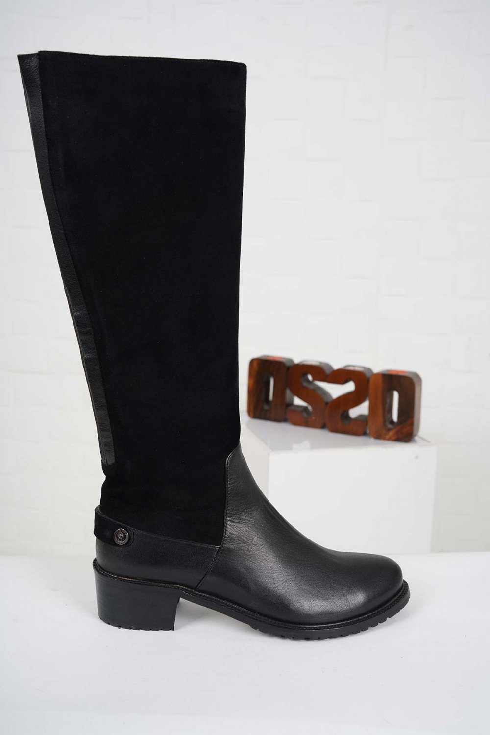 Hakiki Deri Siyah-Siyah Süet Kadın Arka Lastiklı Çizme 202110313