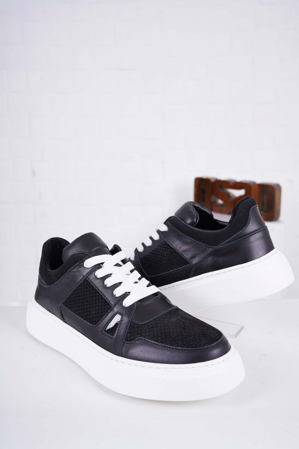 Hakiki Deri Siyah-Siyah Süet Kadın Sneaker Ayakkabı 241218103