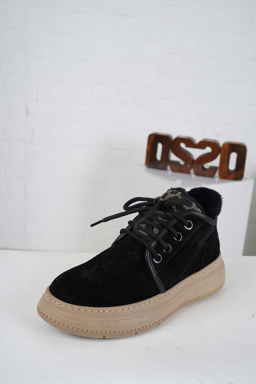 Hakiki Deri Siyah Süet-Garni Kadın Kısa Bot 242225202